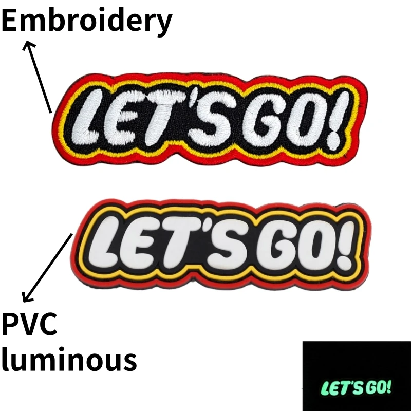 Parches bordados de insignia de moral LET'S GO, brazalete militar táctico del ejército, parche luminoso de PVC, mochila, pegatina decorativa para ropa