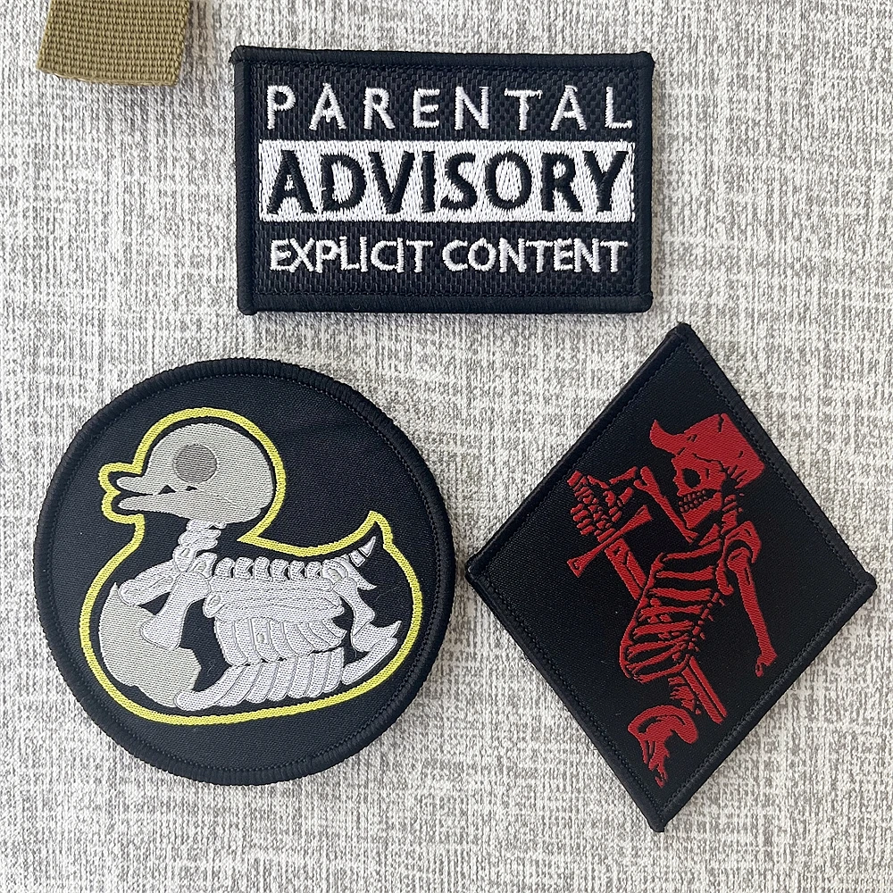 Parches de insignia de moral de calavera de pato amarillo, mochila táctica, etiqueta de tejido de asesoramiento para padres, pegatina de Task Force Doomer TFD Skeletal