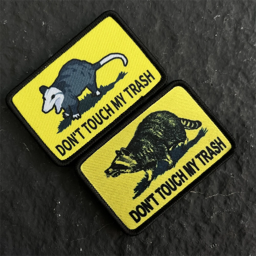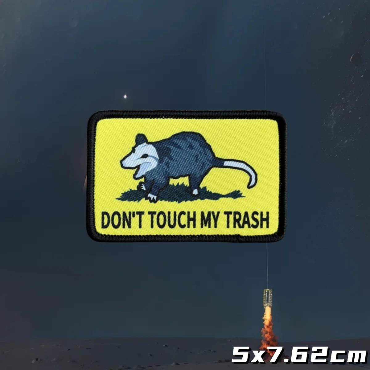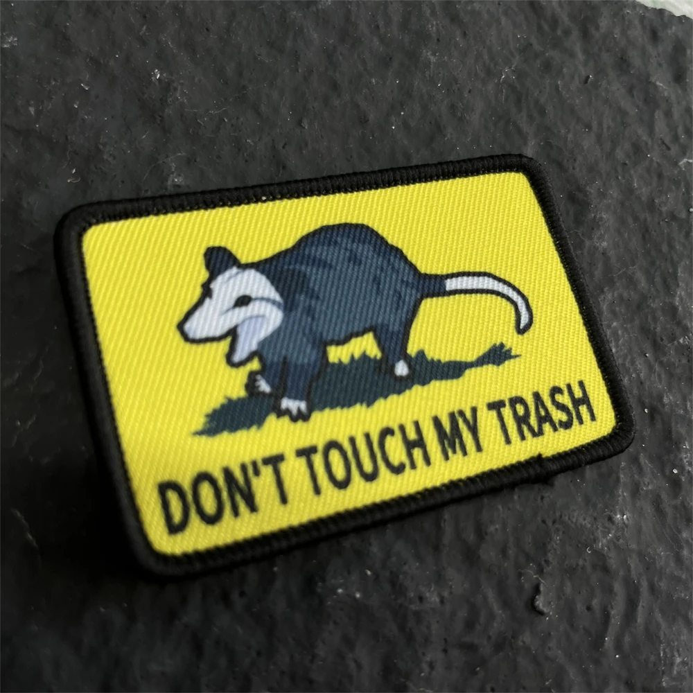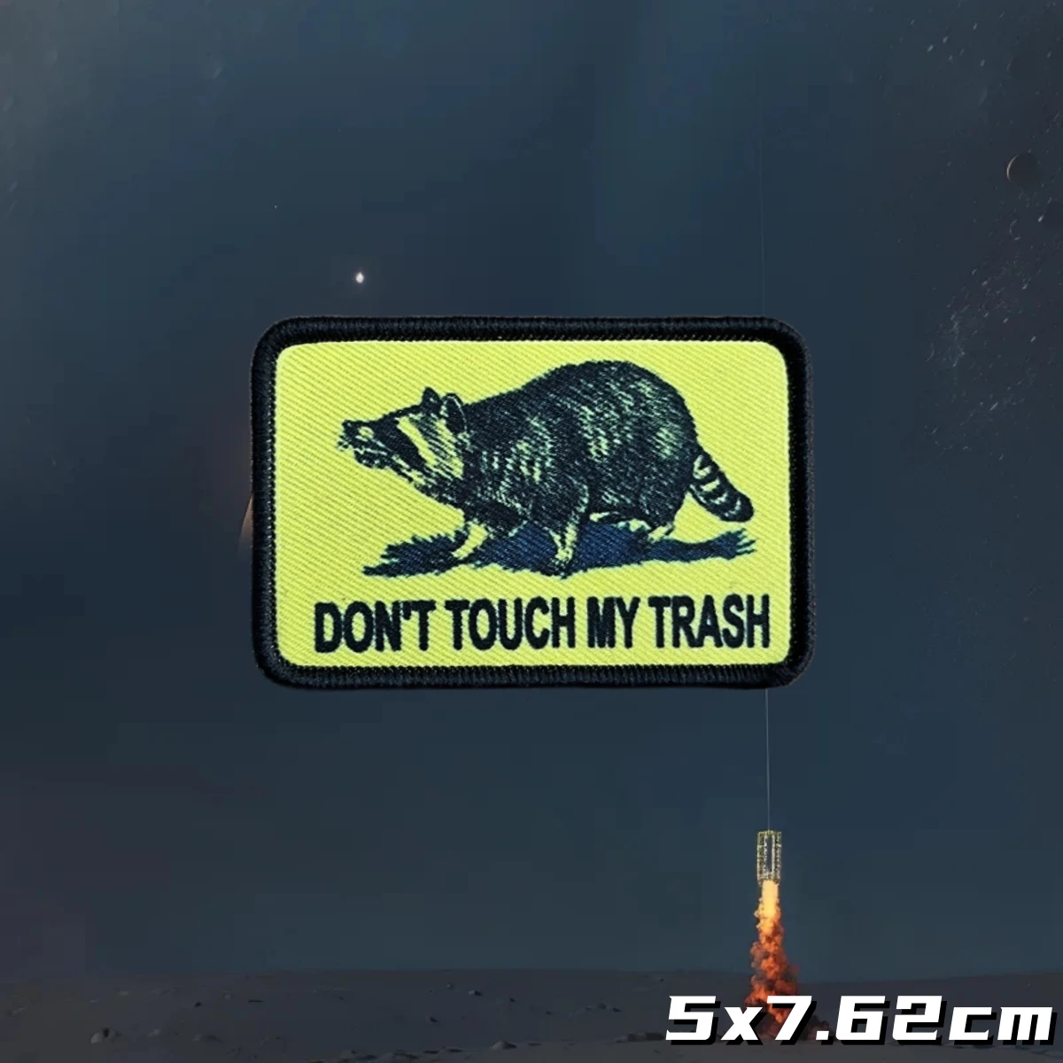 Parches de insignia de moral, táctico, pequeño mapache, "NO TOCAR MI TRASH", brazalete militar, mochila con gancho y bucle, pegatina impresa