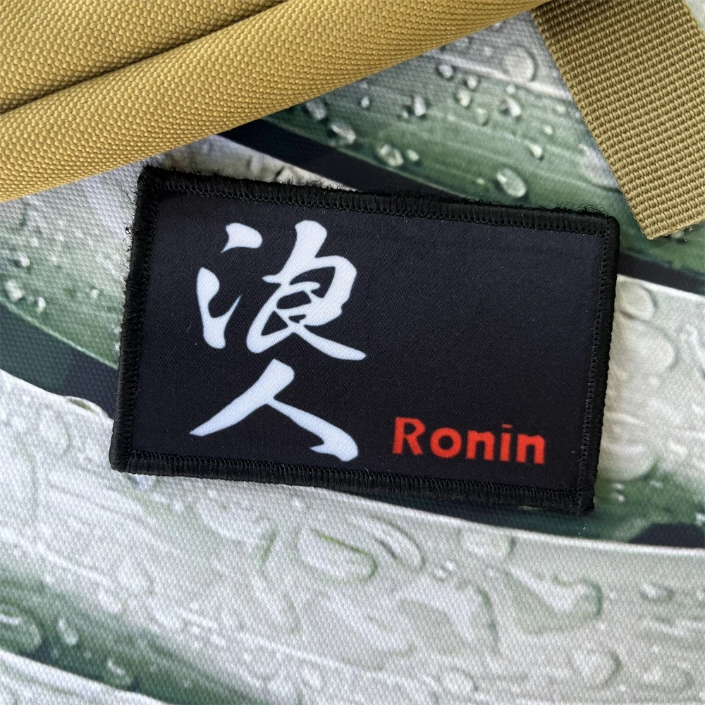 Parches de insignia de moral samurái Ronin, pegatina impresa de gancho y bucle del ejército militar táctico