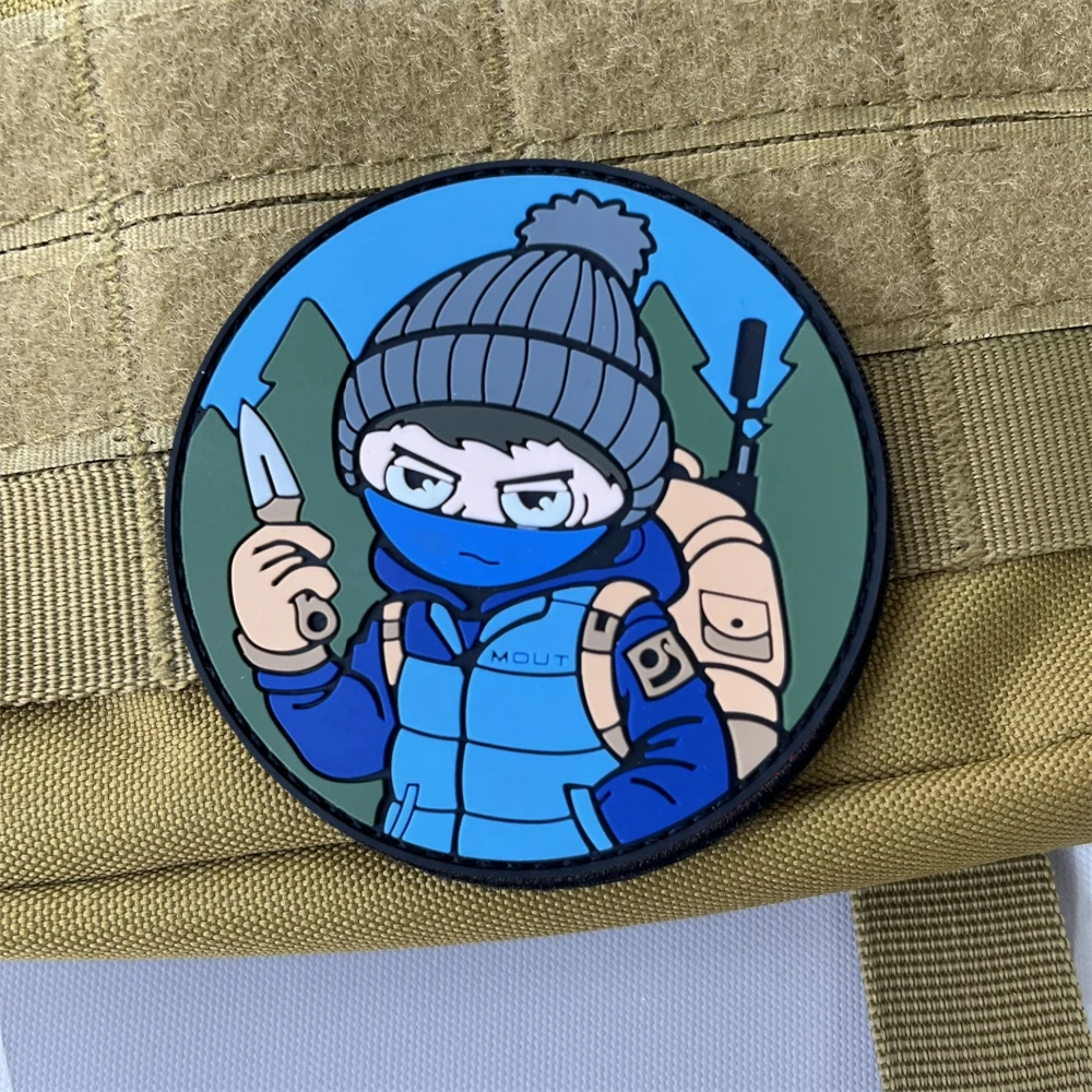 Remember Kids Electricity Will Kill You Parches de insignia de moral táctica Pegatinas de mochila militar de PVC enmascaradas con un cuchillo