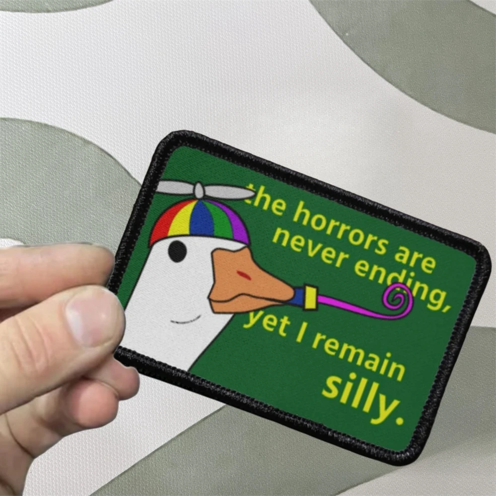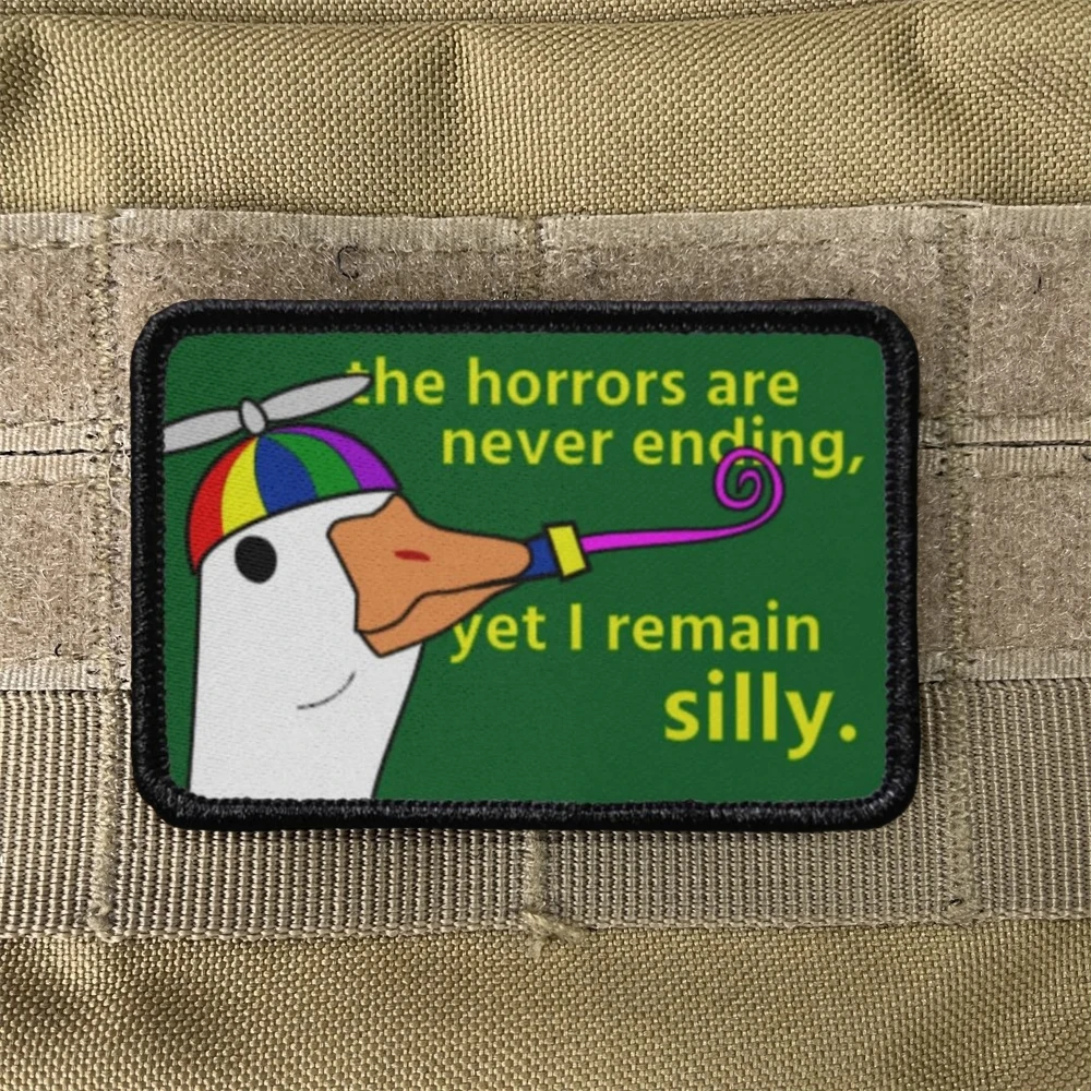 Los horrores nunca terminan, sin embargo, siguen siendo parches de insignia de moral tonta, brazalete táctico, mochila, pegatinas impresas con gancho y bucle