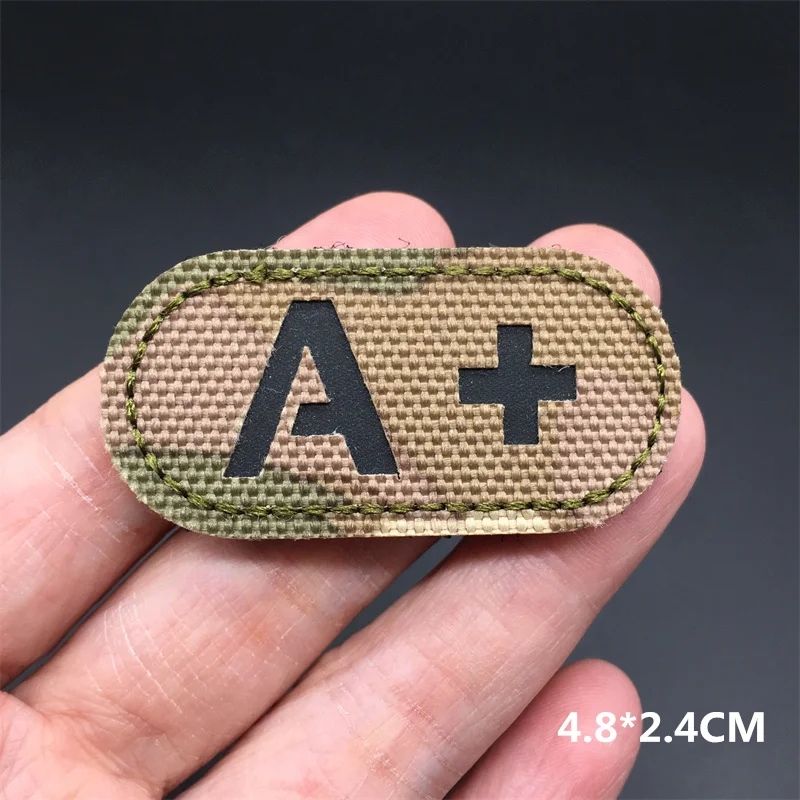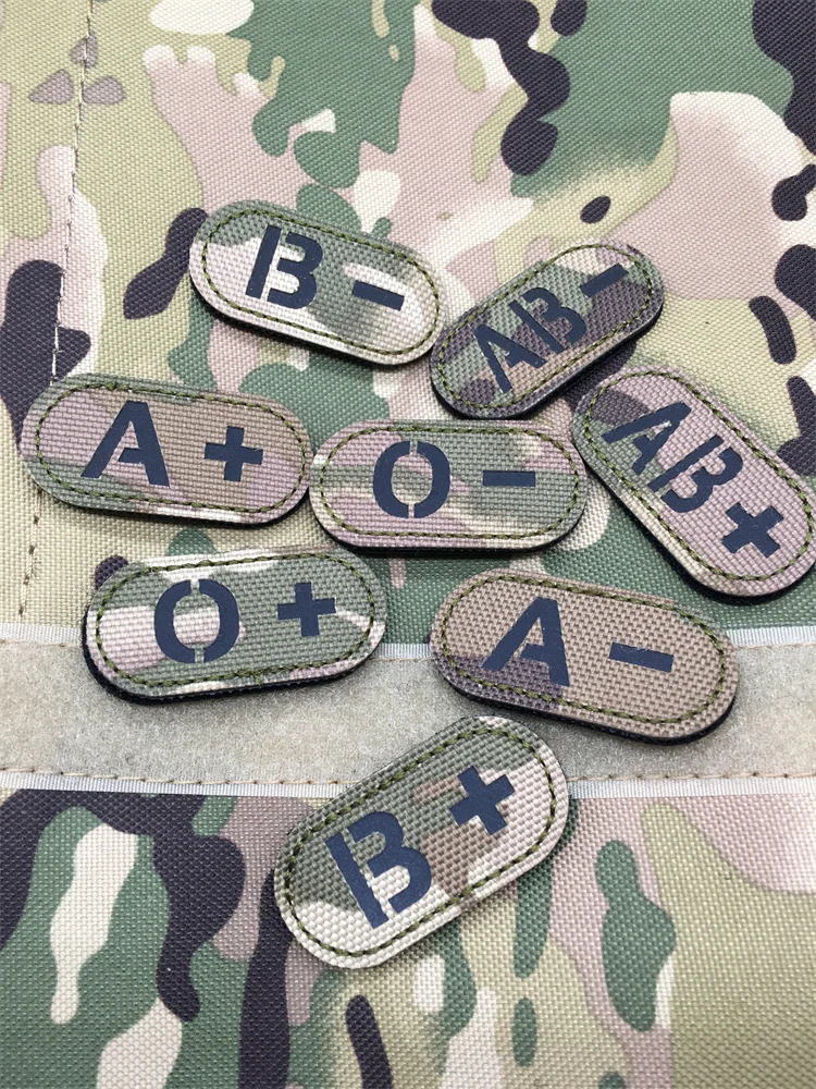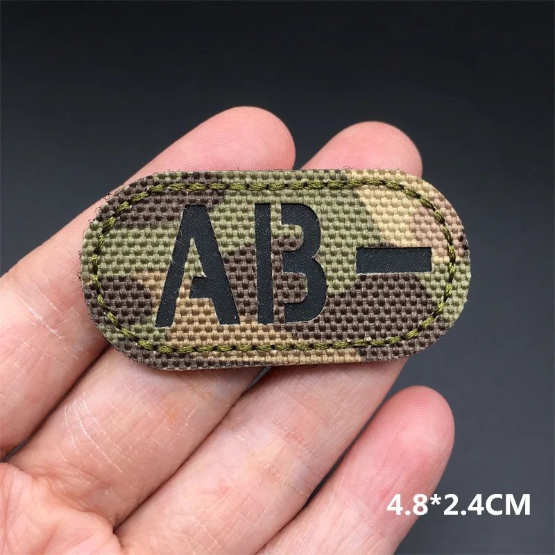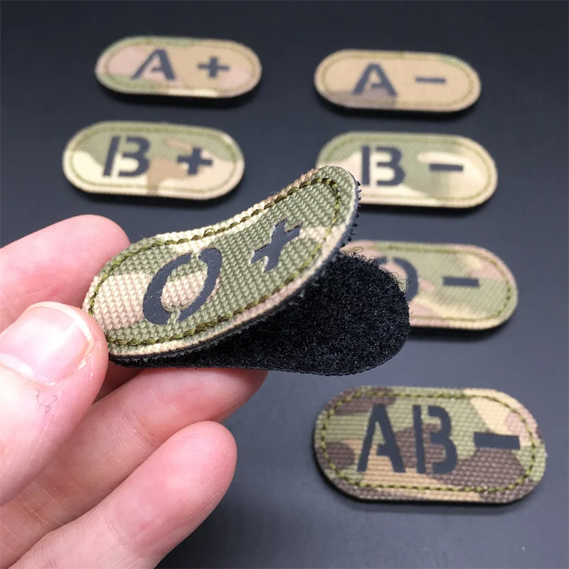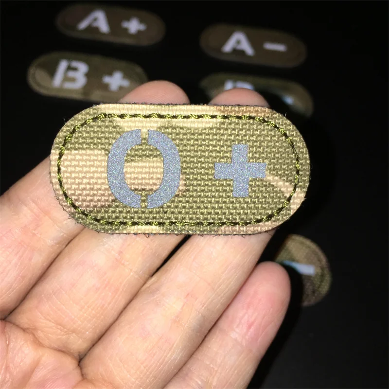 Parches reflectantes infrarrojos positivos Multicam Blood Type A B O AB que brillan en la oscuridad Apliques tácticos Insignias de bucle de gancho