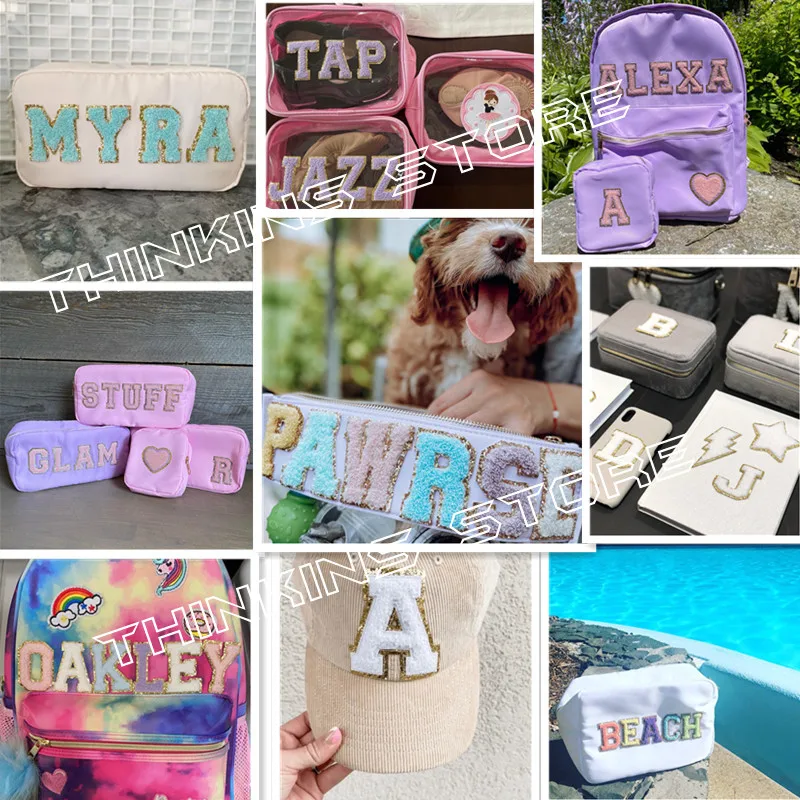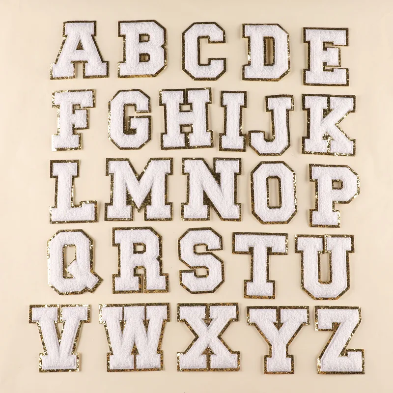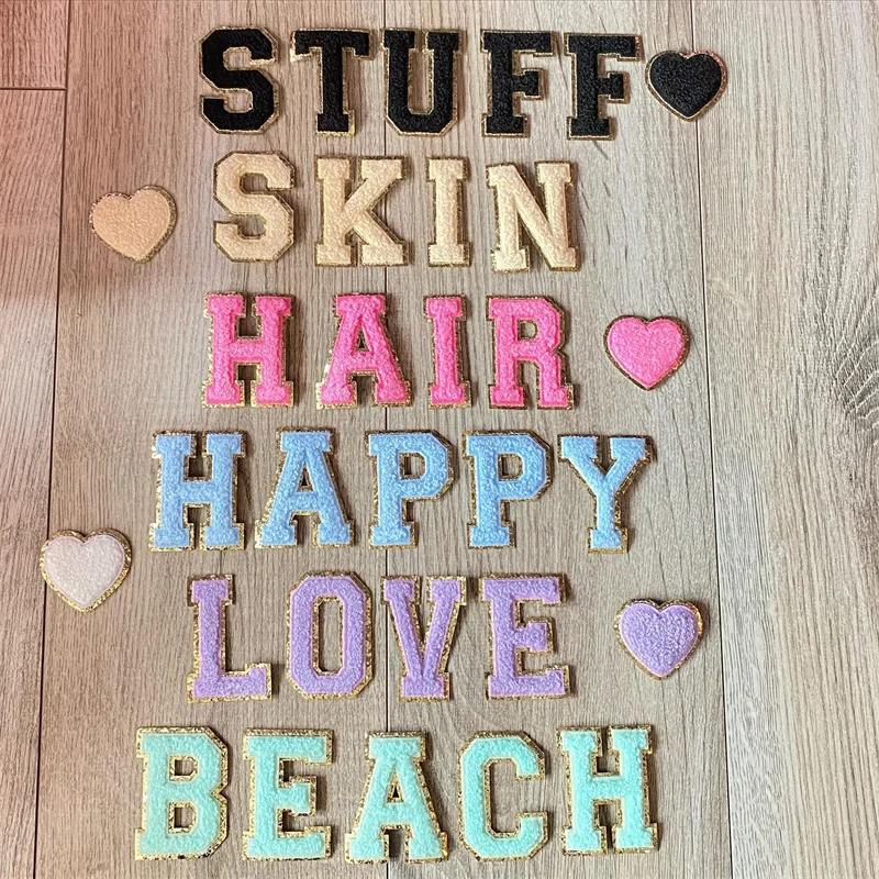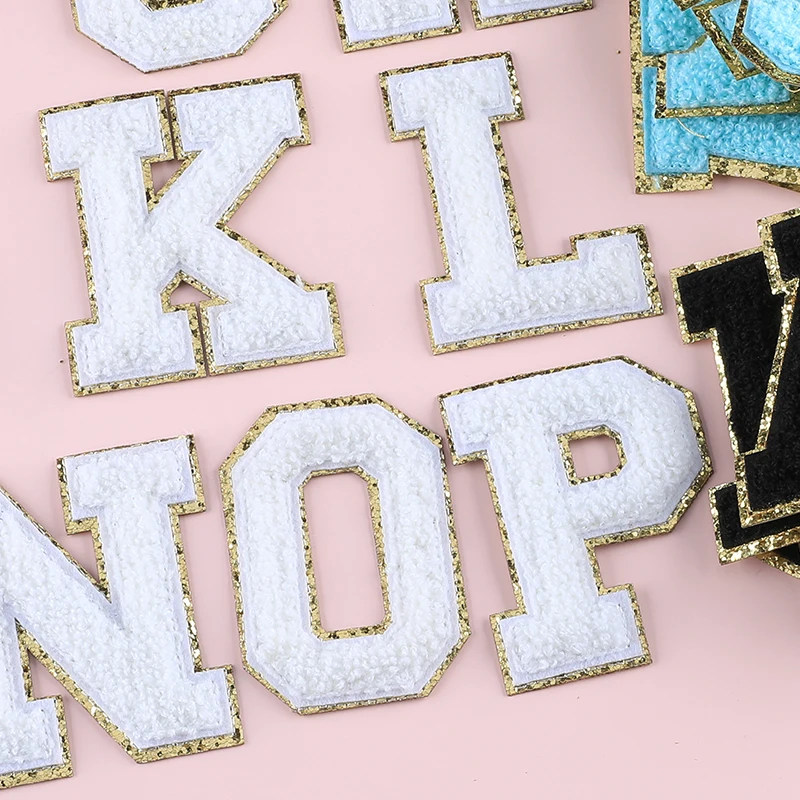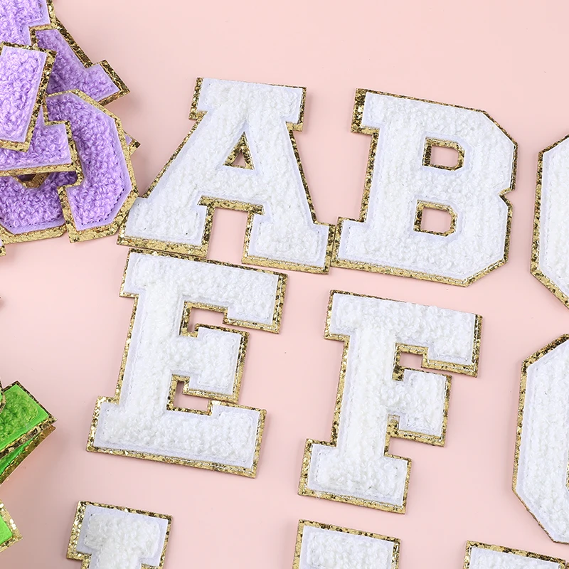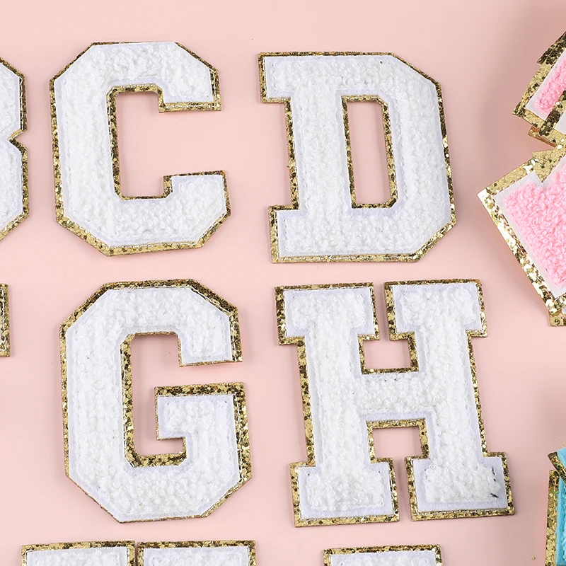 Parches de letras A-Z para ropa, parches bordados de toalla rosa grande en pegatinas para ropa, apliques, accesorios para manualidades DIY, tamaño: 8CM