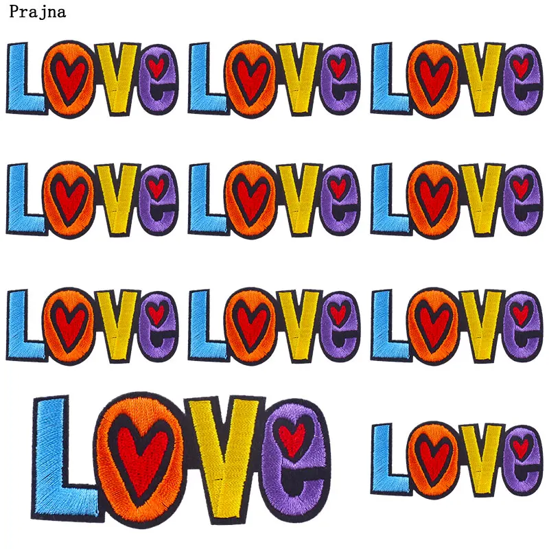 Parches de letras de arco iris de dibujos animados para mujer, 10 unids/lote, parches bordados para planchar, pegatinas para ropa