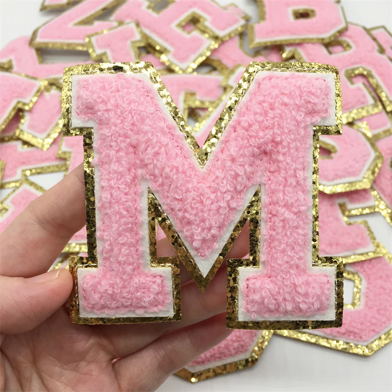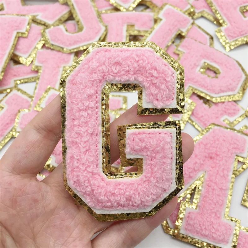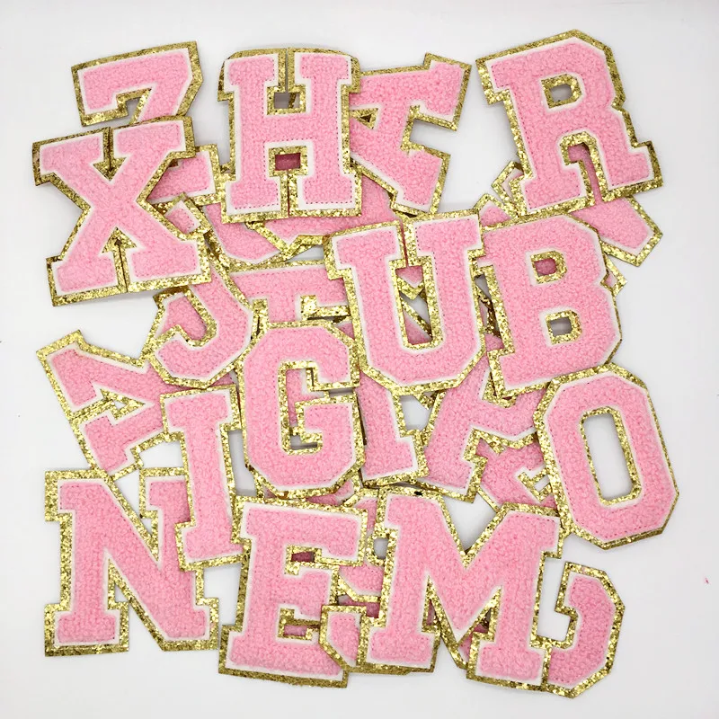 Parches de letras de gran tamaño A-Z para ropa, parches para planchar de Color rosa para ropa, pegatinas de costura, apliques (8CM)