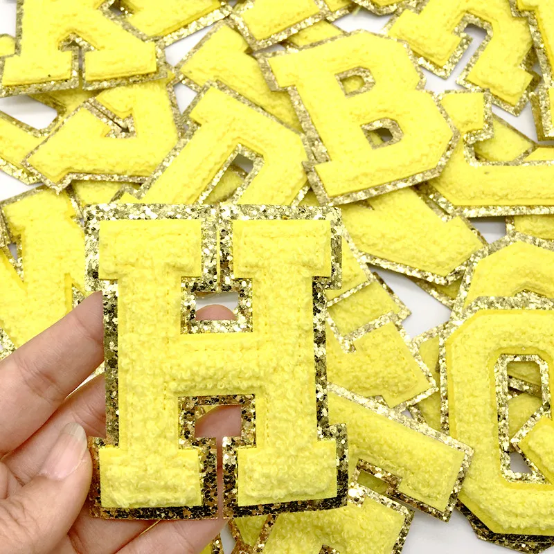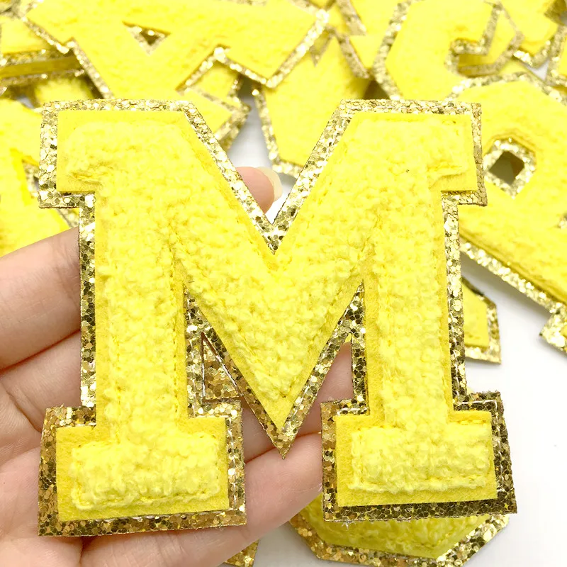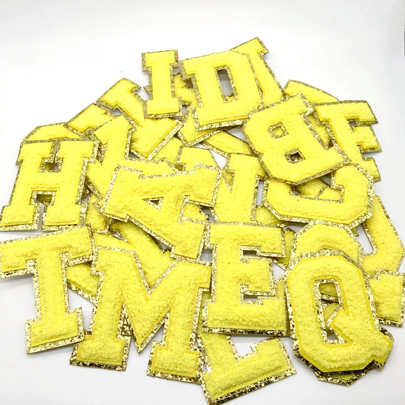 Parches de letras de gran tamaño para ropa, en la ropa de Color amarillo para planchar A-Z, pegatinas para coser, aplicaciones (8CM)