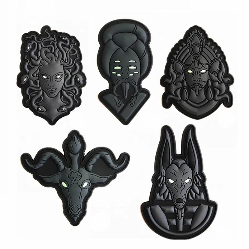 Parches luminosos de PVC 3D para ropa, mitología, pelo de serpiente, Medusa, Anubis, búfalo, mitos, leyendas, insignias tácticas, apliques
