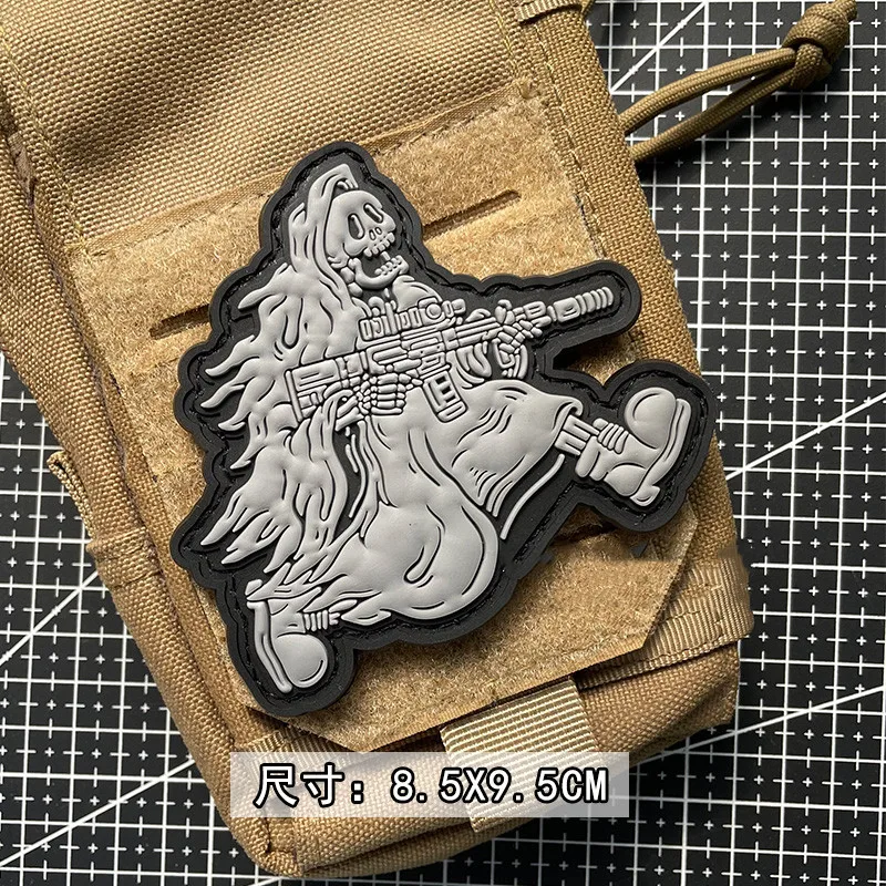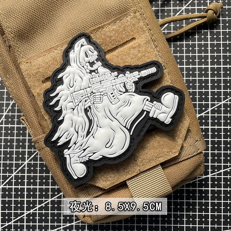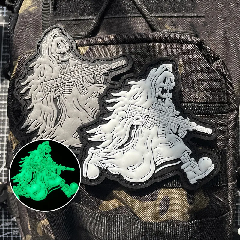 Parches luminosos de PVC para ropa, pegatinas de Grim Reaper, tácticas del faraón, insignias de arma de sujeción de esqueleto DIY, decoración de mochila