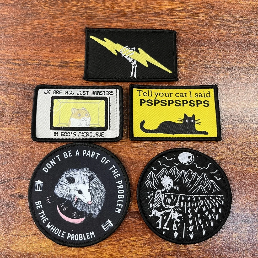 Parches de marca de tejido de calavera relámpago para ropa, Animal táctico, gato, emblema de moral, equipo al aire libre, pegatina de mochila