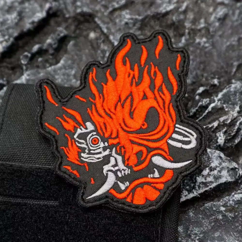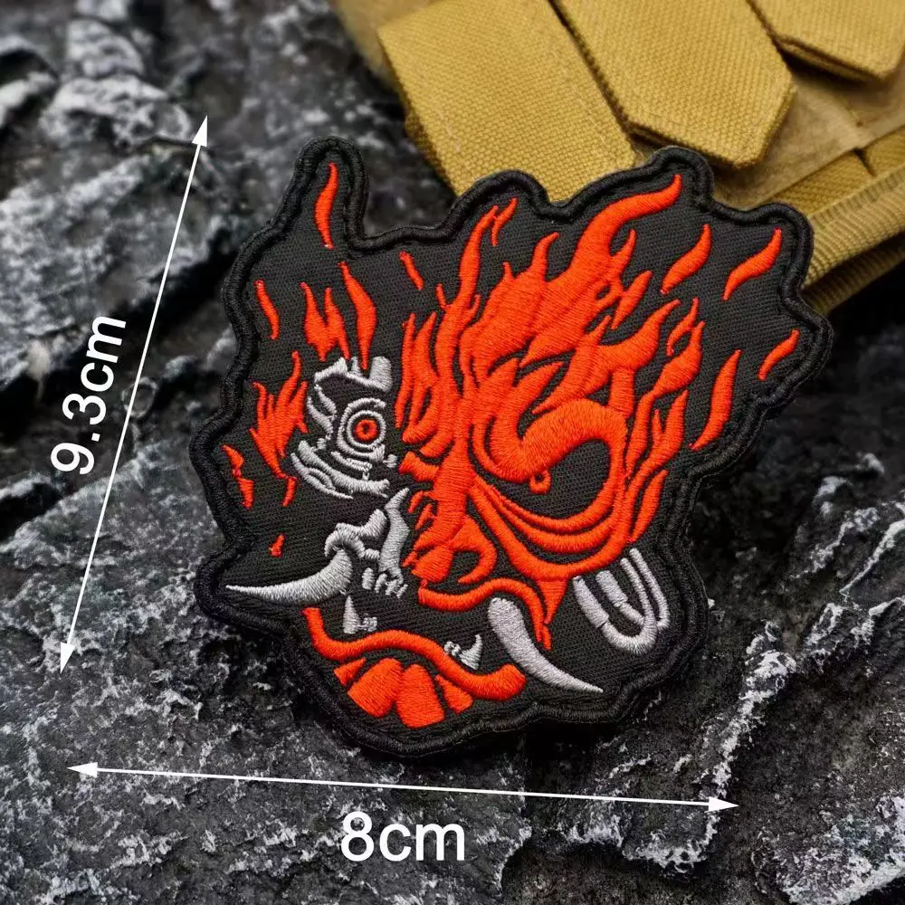 Parches de Metal de samurái japonés, bordado, máscara de demonio, insignias de calavera de guerrero para ropa, chaleco, chaquetas, reparación de ropa, decoración