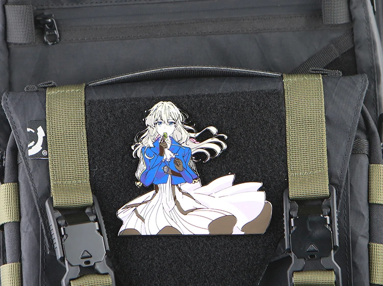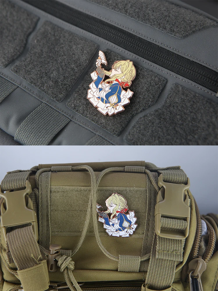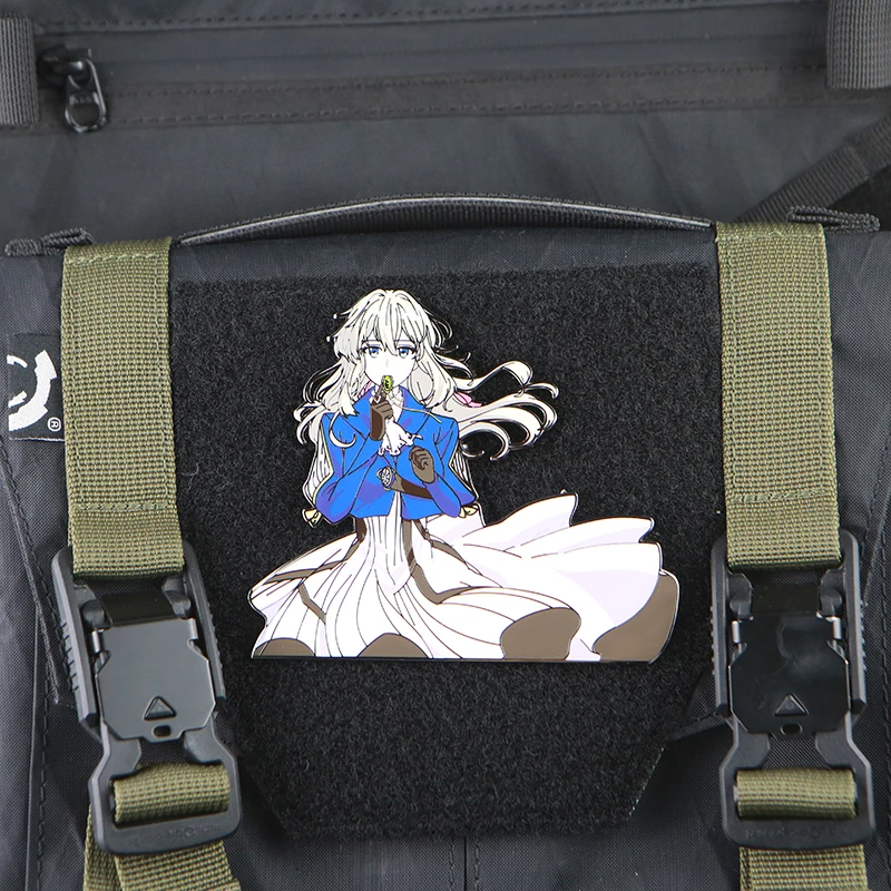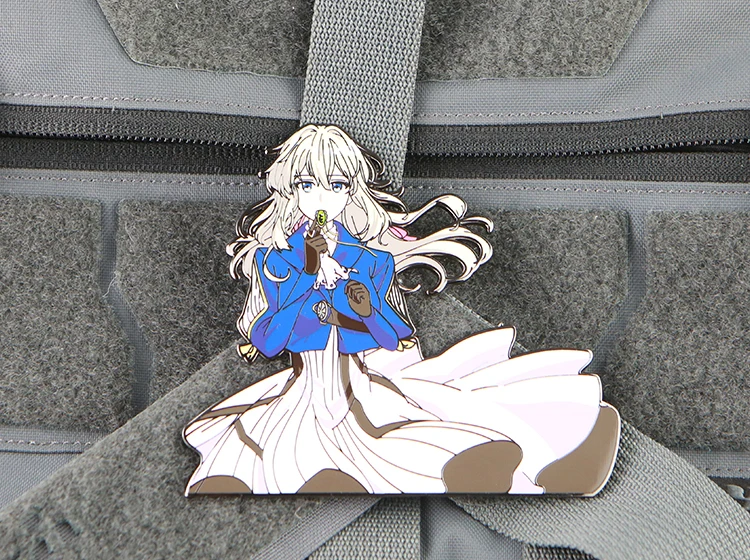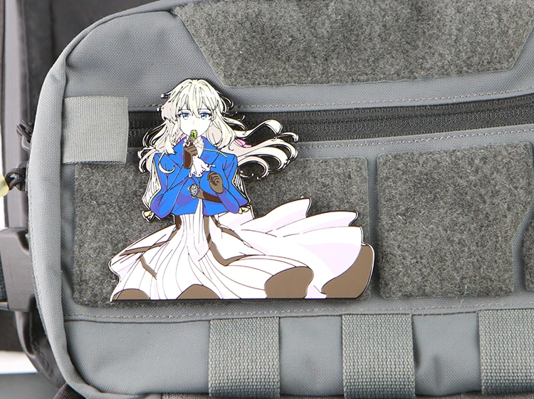 Parches metálicos esmaltados de Anime Violet Evergarden, insignias bordadas DIY para chica hermosa para ropa, mochila, sombrero, decoración con gancho