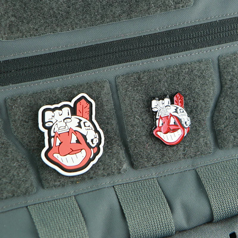 Parches metálicos de PVC 3D de defensa Superior, dispositivos de visión nocturna con sonrisa de piel roja nativa americana, insignias de casco táctico para ropa
