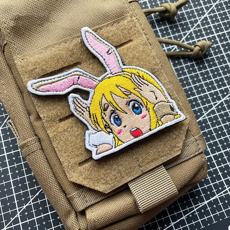 Parches militares de chica de Anime, insignia bordada de Sailor Moon con orejas de conejo, ojos grandes, bolsa táctica bonita, apliques adhesivos para ropa, Material: tela