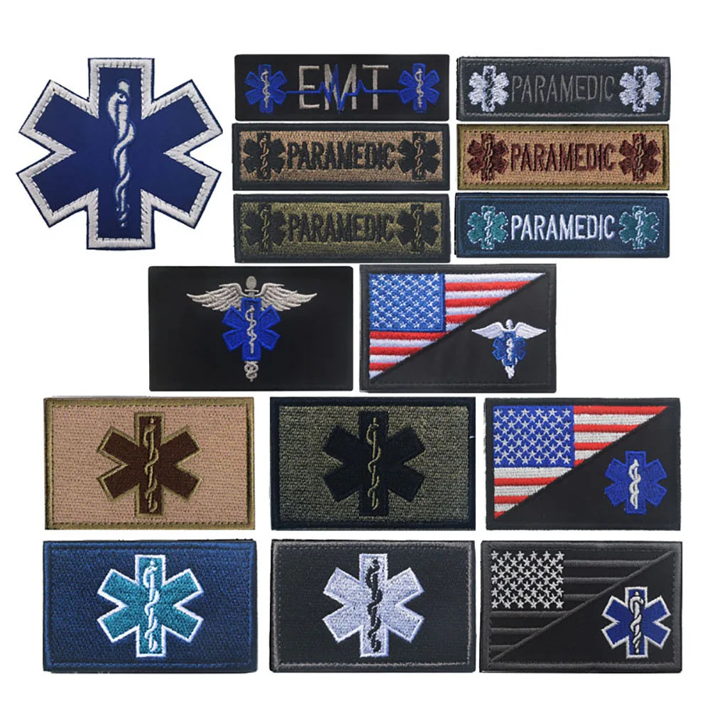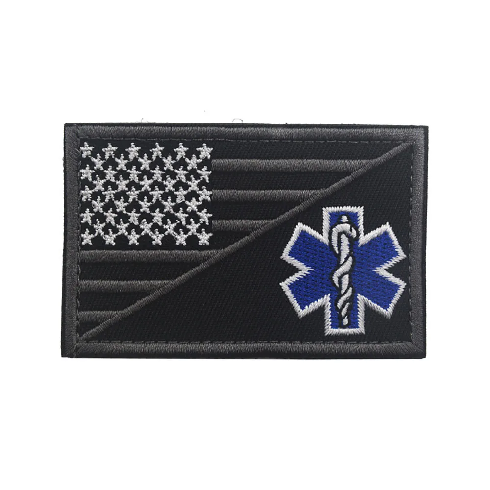 Parches militares bordados con bandera de EE. UU., EMT, estrella de la vida, rayas, emblema de ayuda médica paramédica de primeros auxilios, insignia táctica