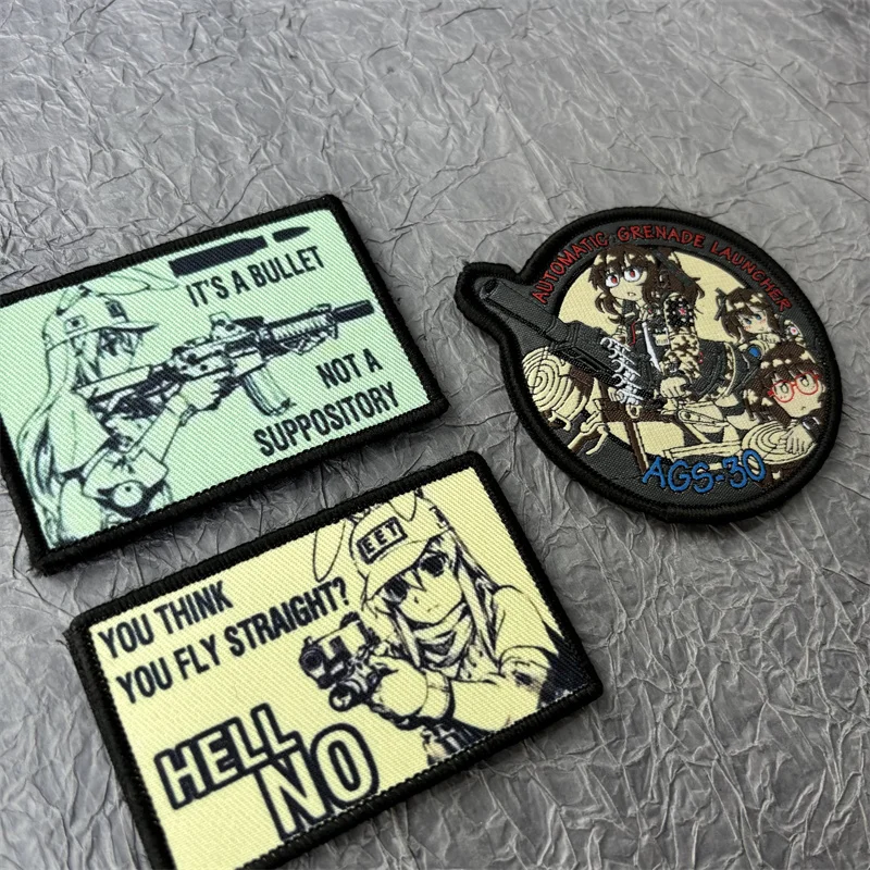 Parches militares de primera línea para niña, insignia estampada, bucle de gancho, brazalete táctico de moral, parche para exteriores, pegatinas para mochila para ropaFuras: