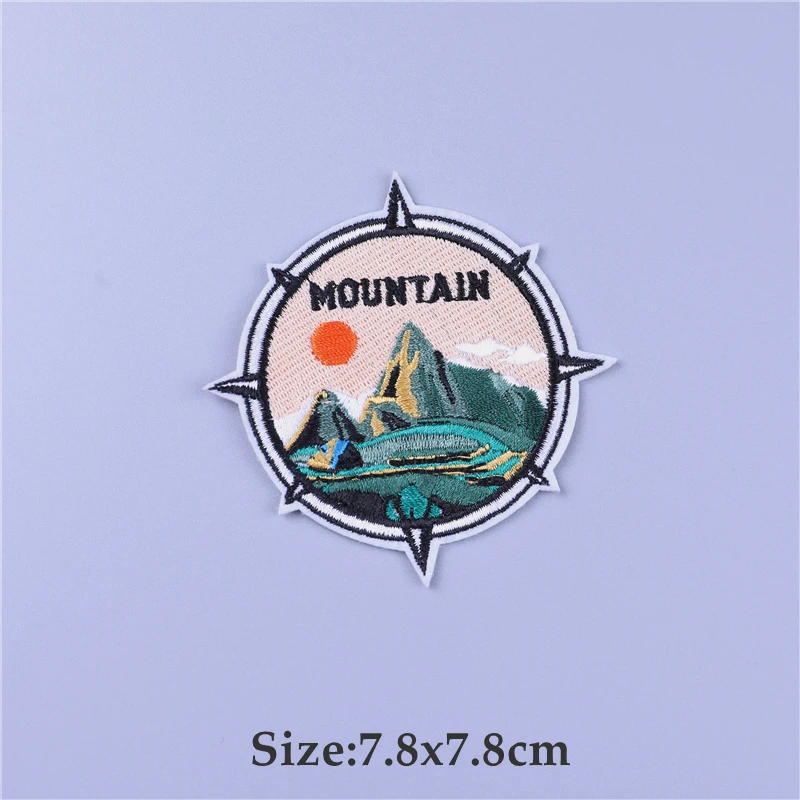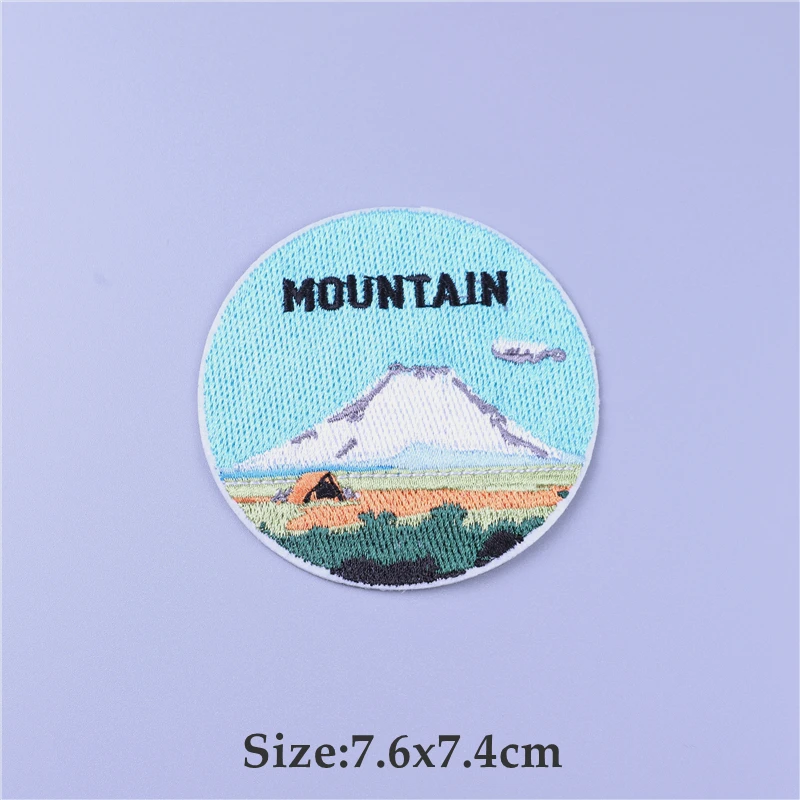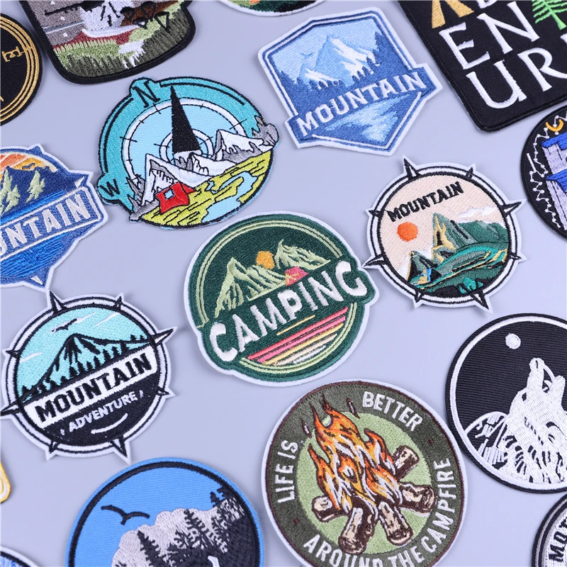 Parches de ropa de montaña para aventura al aire libre, parches termoadhesivos para acampar y viajar, parches bordados para ropa termoadhesiva