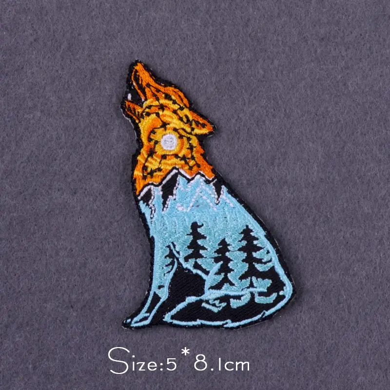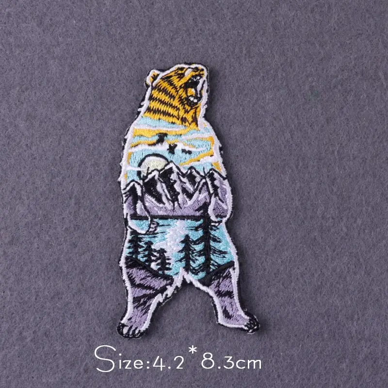 Parches de oso/lobo para ropa, parches bordados para acampar y montaña, pegatinas de rayas de viaje de aventura, parches para planchar en ropa