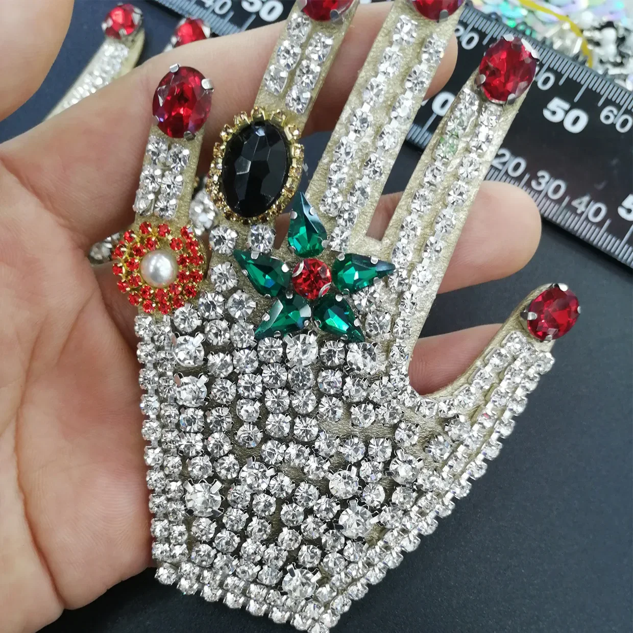 Parches de Palma de diamantes de imitación Vintage 3D para coser en la ropa, apliques de cuentas hechos a mano, zapatos, chaqueta, bolso, accesorios decorativos DIY, pegatinas