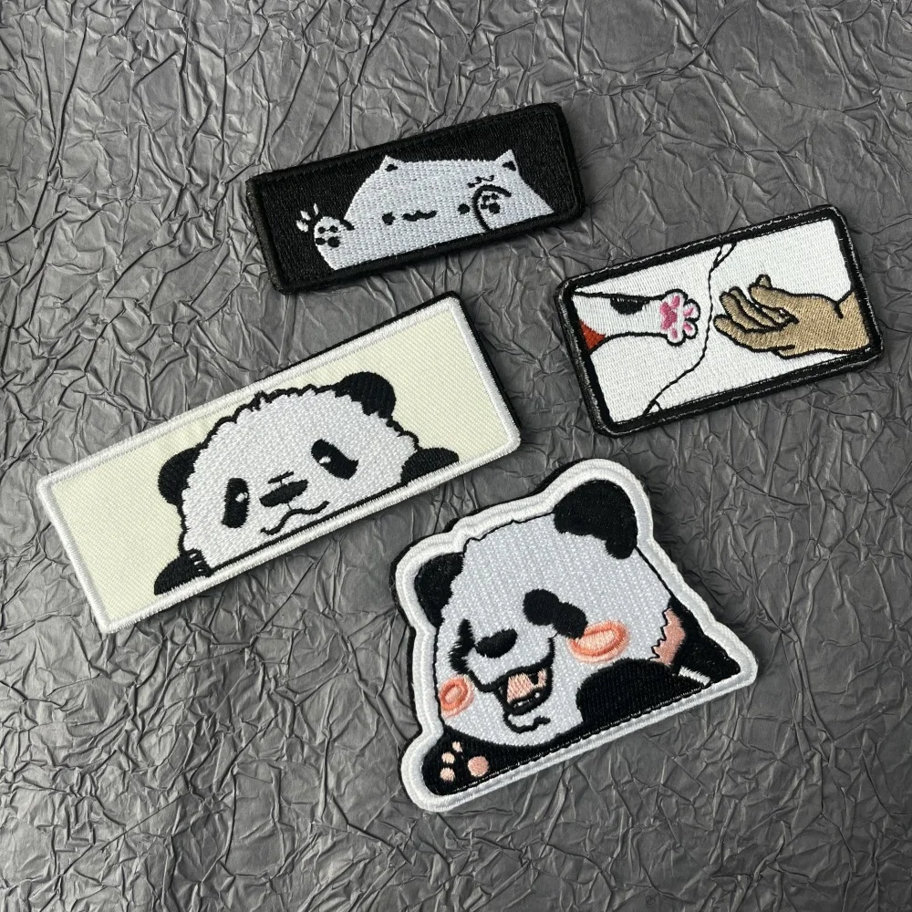 Parches de Panda de dibujos animados para ropa, insignias de gancho y bucle bordadas, parche para mochila, pegatinas tácticas, apliques para ropa