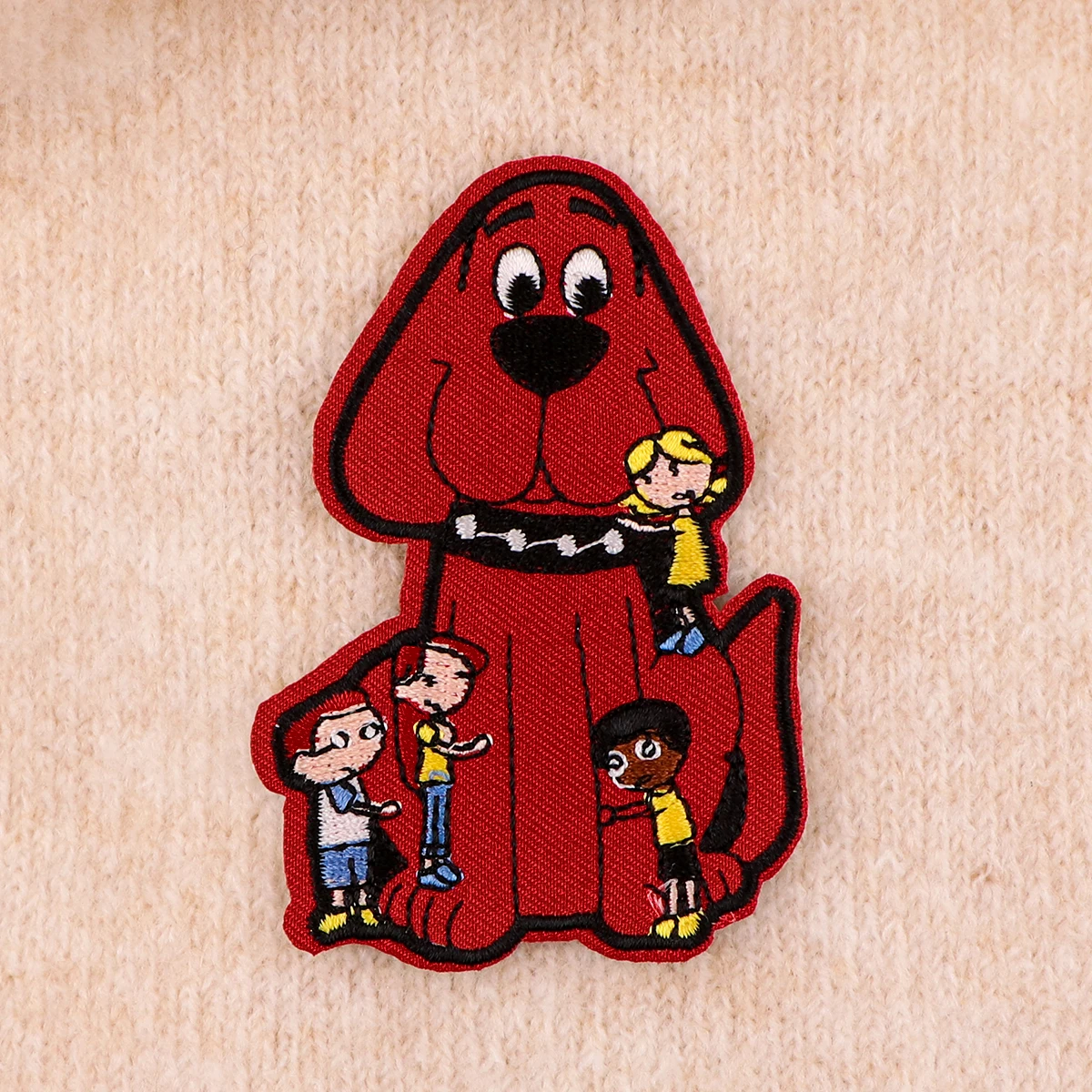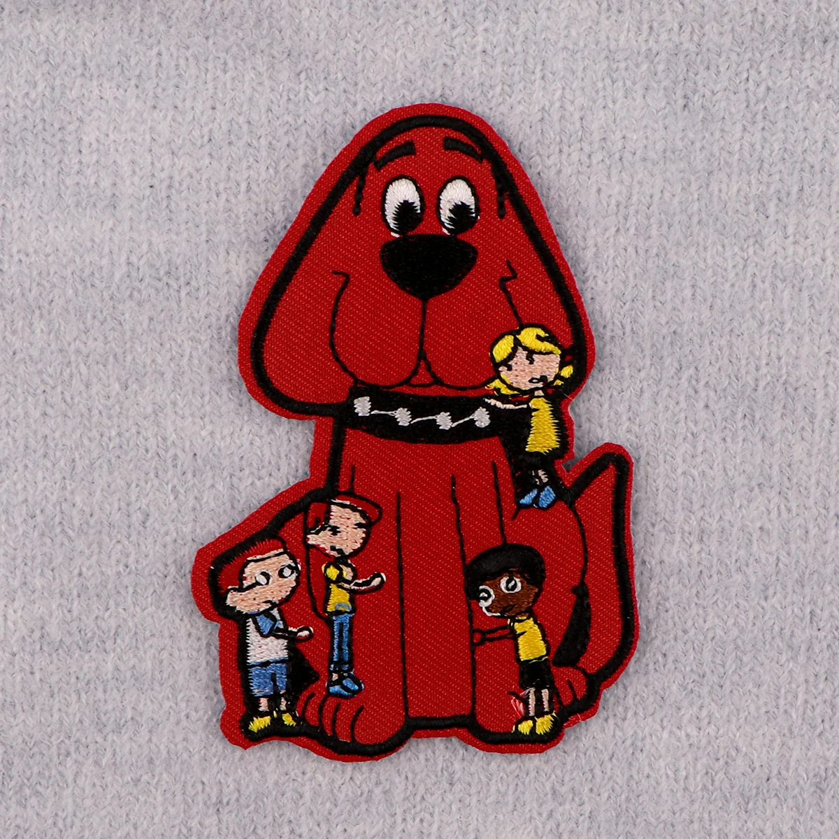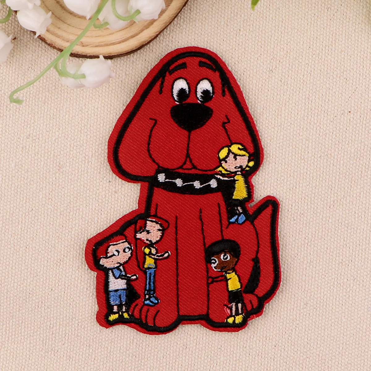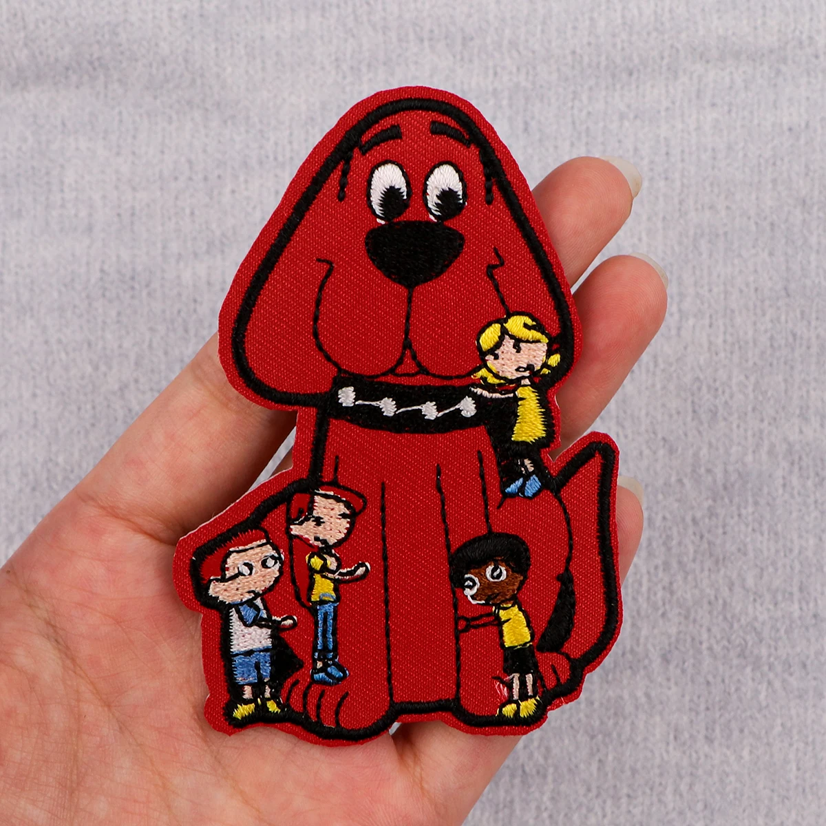 Parches de perro rojo para ropa, parches de película de comedia, apliques para planchar en insignias, pegatinas para ropa, costura artesanal, rayas bordadas