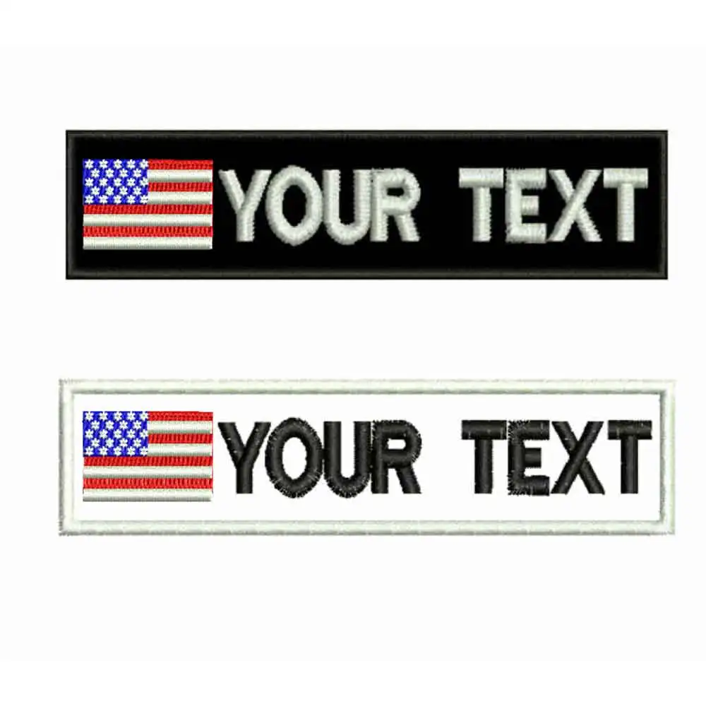 Parches personalizados con el nombre de la bandera de EE. UU., soporte de gancho para planchar, 10x2,5 cm, F1-5B