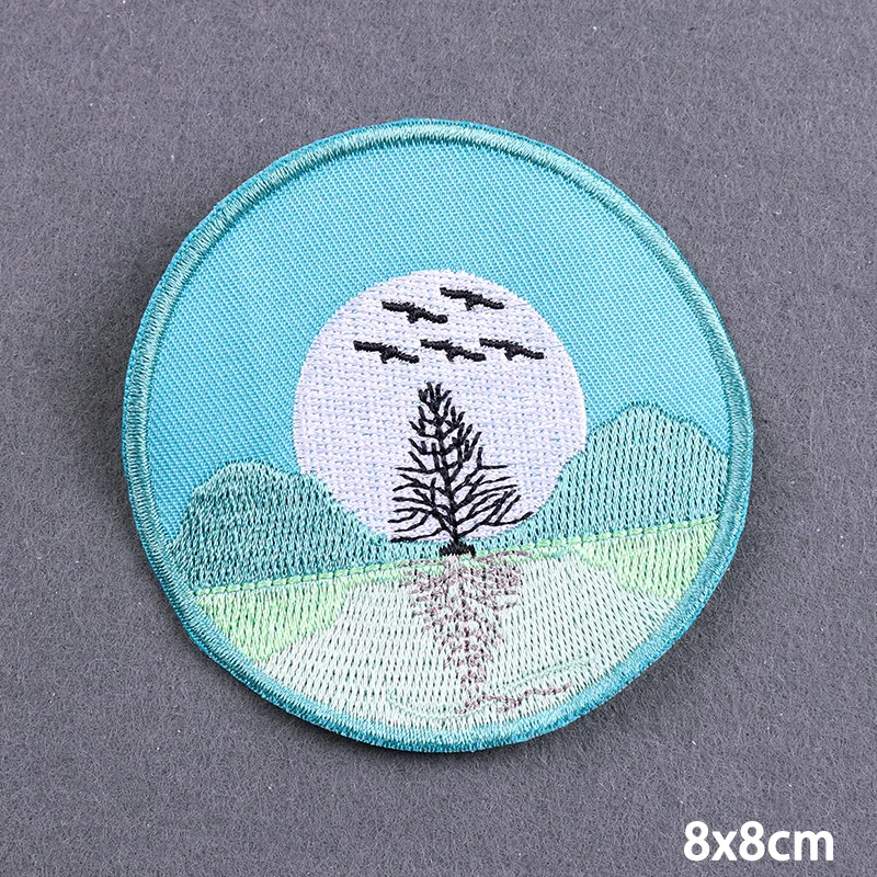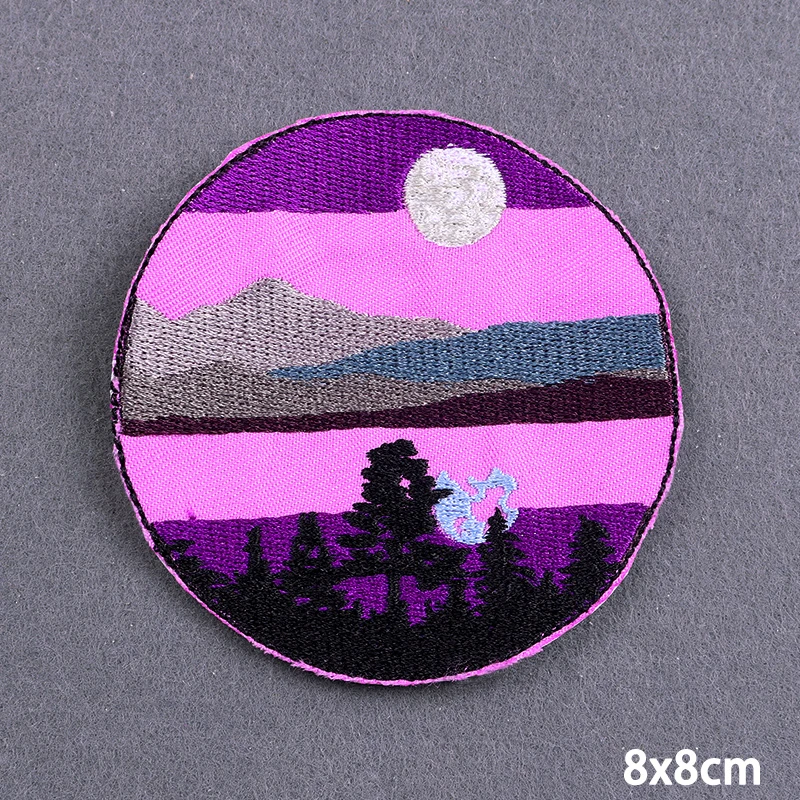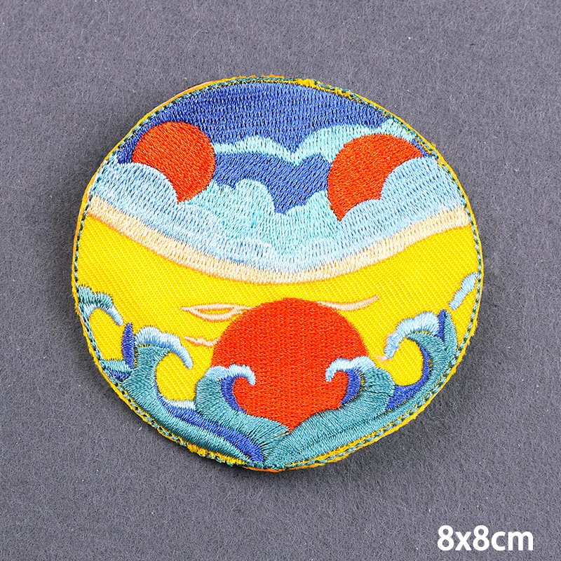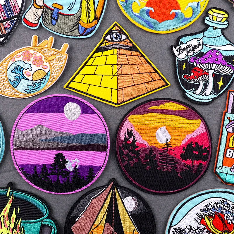 Parches piramidales para planchar para ropa, parches termoadhesivos para ropa, parches bordados de puesta de sol para decoración de ropa salvaje