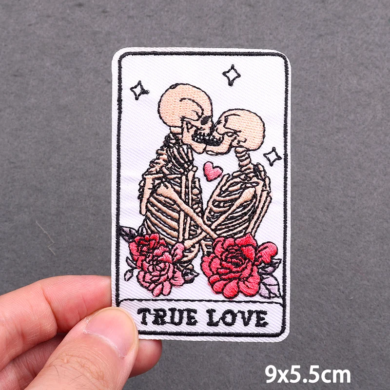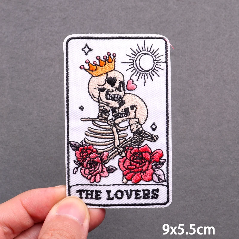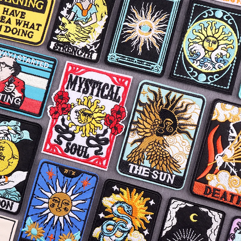 Parches de hierro con cartas de Tarot para ropa, pegatinas bordadas Punk Hip-Hop para reparación de jeans rasgados, decoración de ropa personalizada DIY