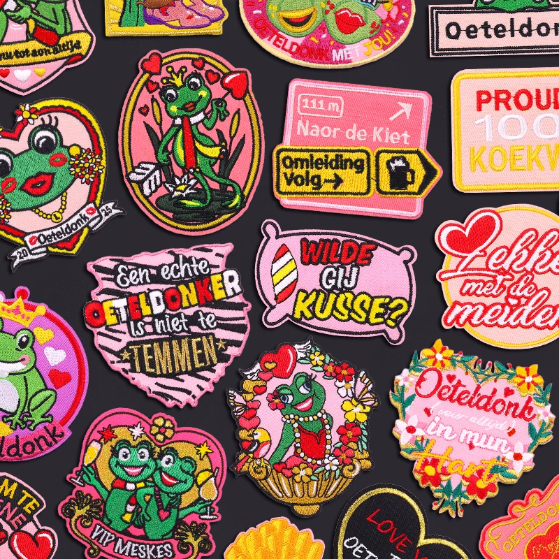 Parches bordados de Carnaval de los Países Bajos, emblema de Oeteldonk, nuevo emblema rosa para ropa, parche de costura