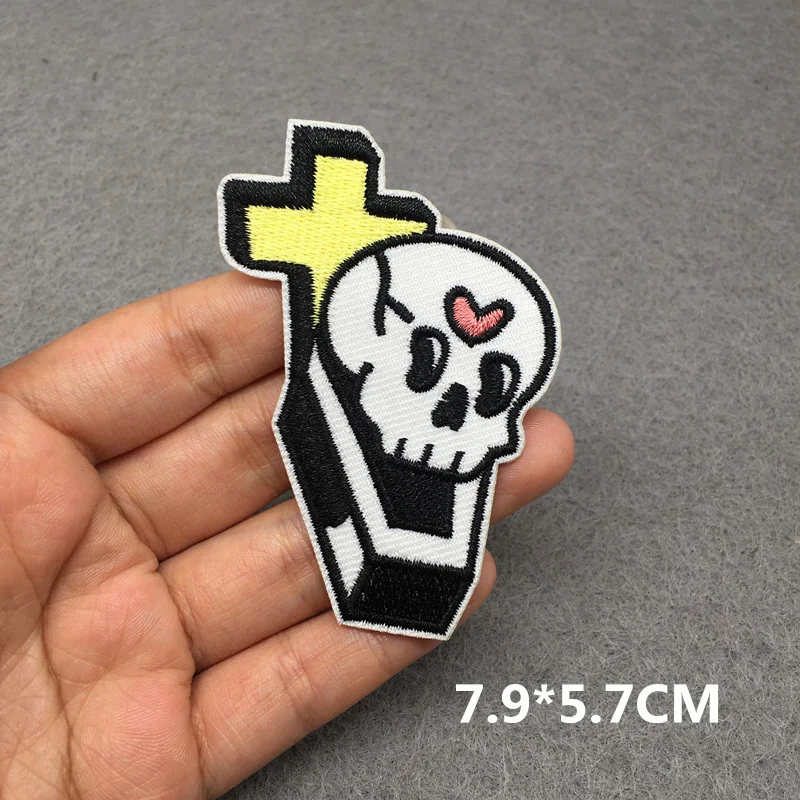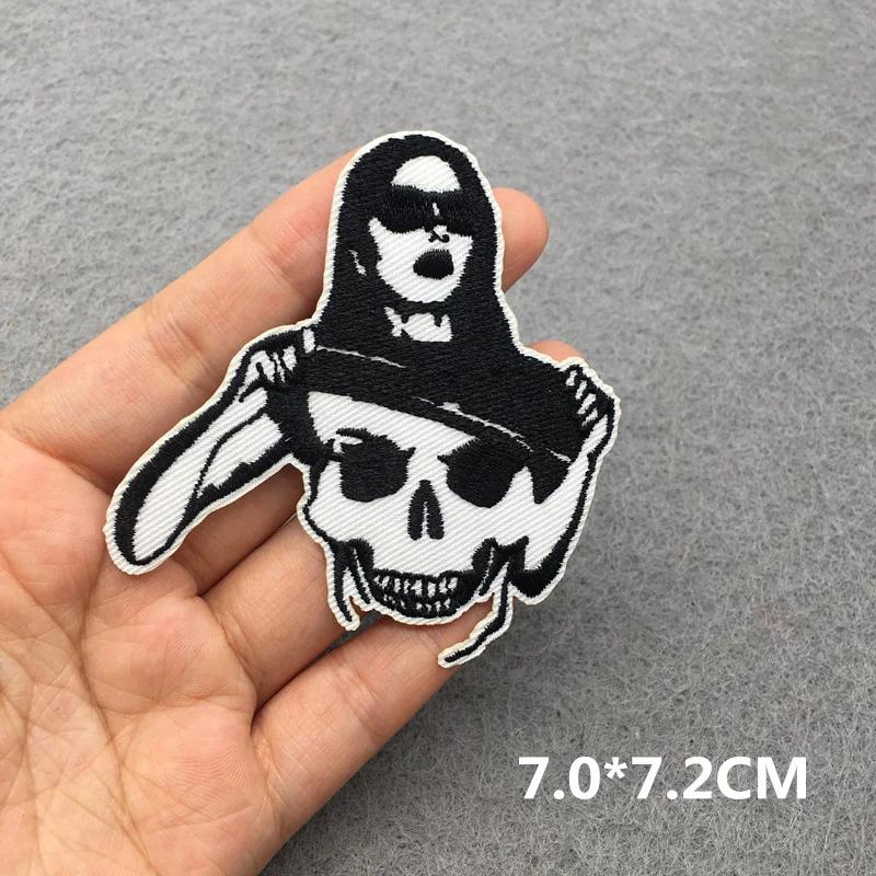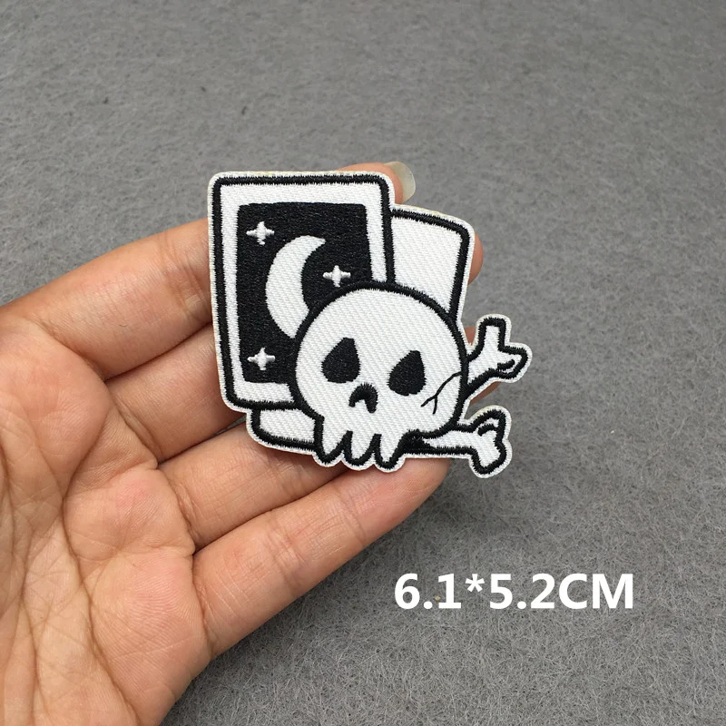 Parches de hierro en blanco y negro para ropa, parches de calavera Punk en ropa, parche bordado, insignias de dibujos animados DIY, pegatina