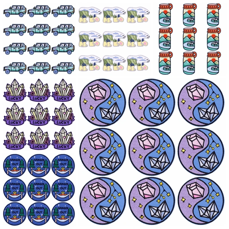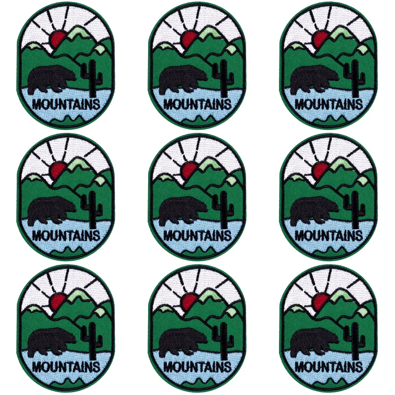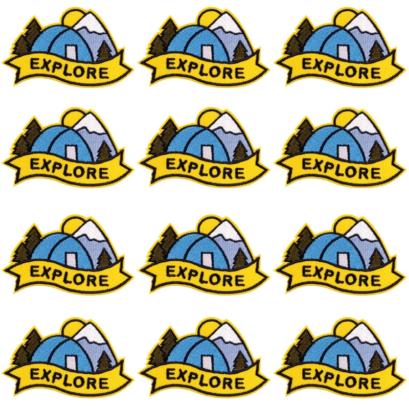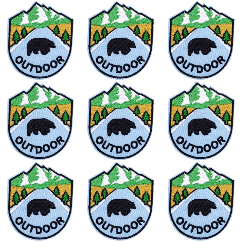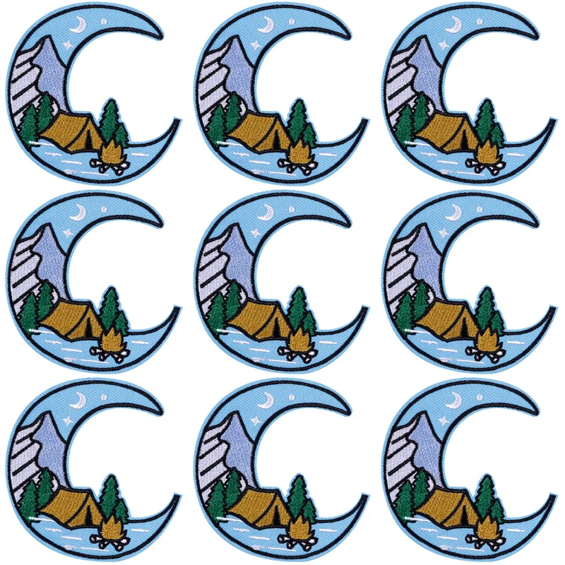 Parches para planchar con temática de acampada, parches bordados de aventura para ropa, pegatinas de planchado, apliques DIY para chaqueta, venta al por mayor, 10 piezas