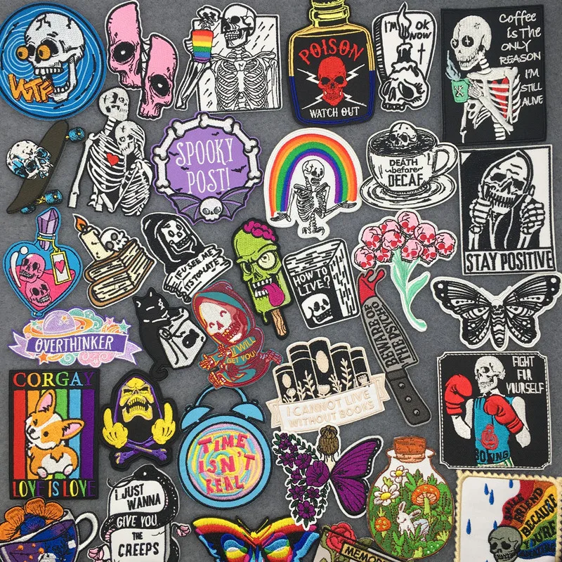 Parches Punk de calavera para ropa, pegatinas de dibujos animados, apliques, parche termoadhesivo para ropa, insignia para chaqueta, bricolaje