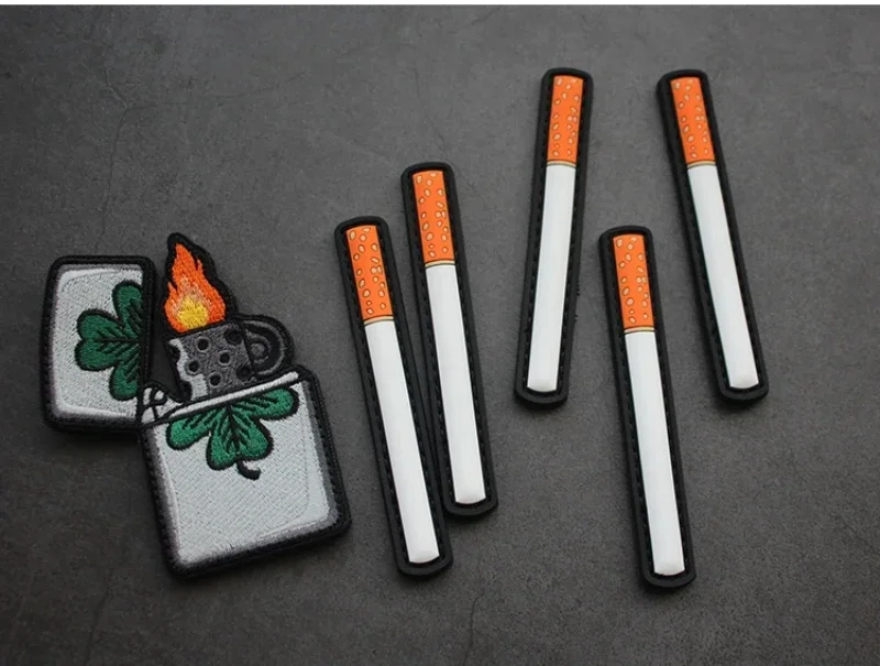 Parches de PVC 3D de humo, insignia de moral, parches de cigarrillos tácticos personalizados para mochila, sombrero, chaqueta, pegatinas de brazalete con gancho y bucle