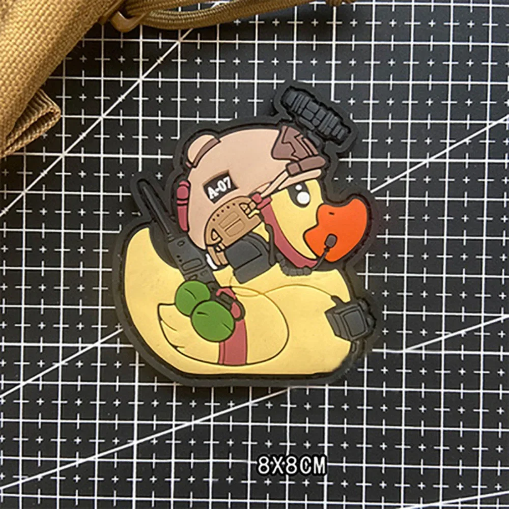 Parches de PVC con bordado de pato amarillo, accesorios tácticos, brazalete militar, insignia de moral, mochila, chaleco