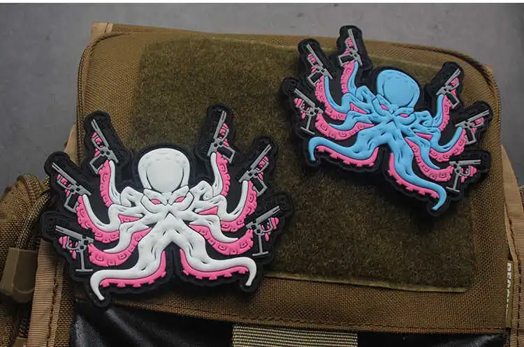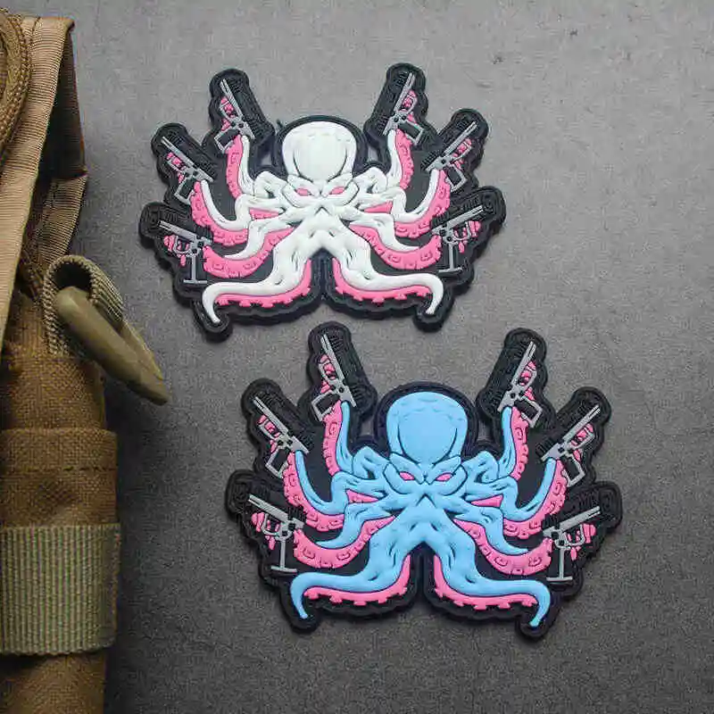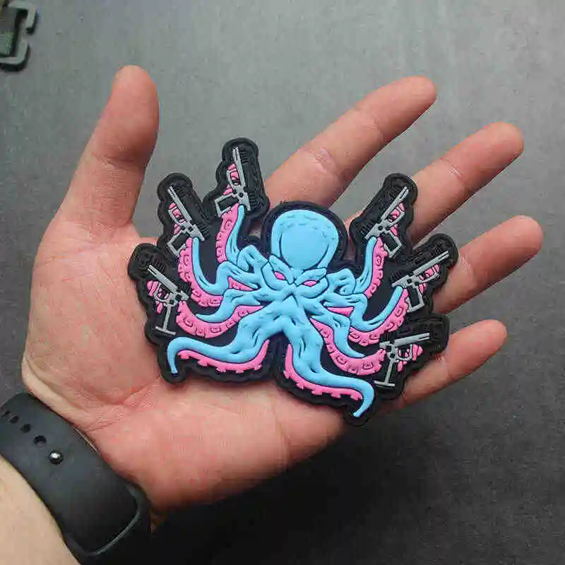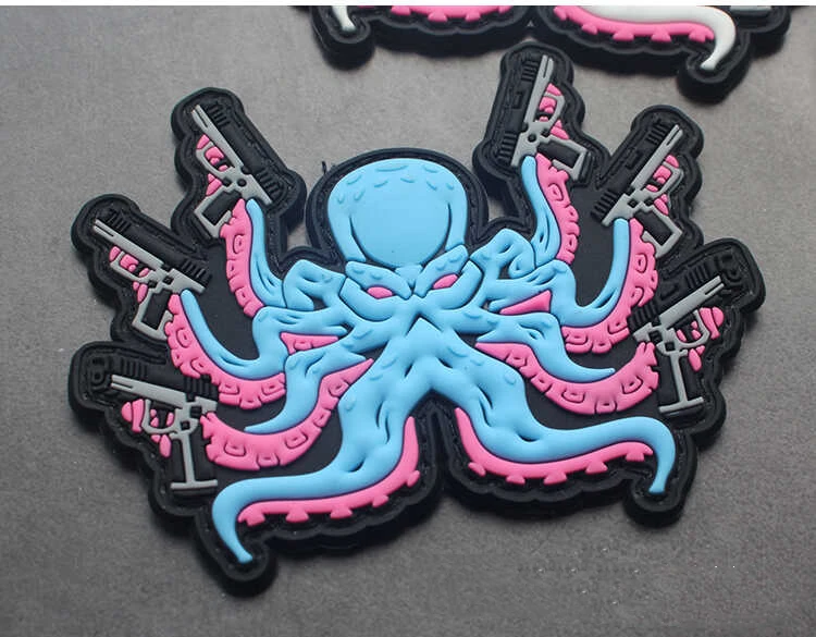 Parches de PVC en 3D con forma de pulpo para ropa, pegatinas para chaqueta, mochila, apliques