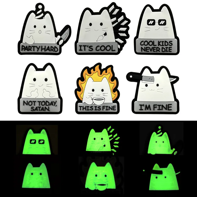Divertido gato PVC parches táctico moralidad emblema noche brillo gancho y bucle brazalete mochila pegatina