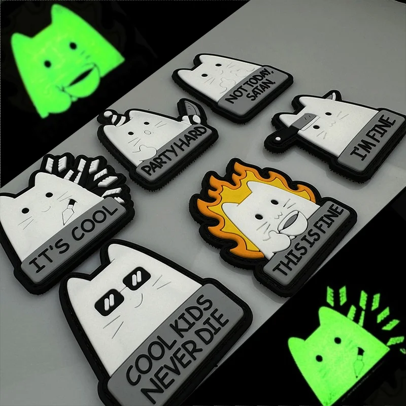 Divertido gato PVC parches táctico moralidad emblema noche brillo gancho y bucle brazalete mochila pegatina