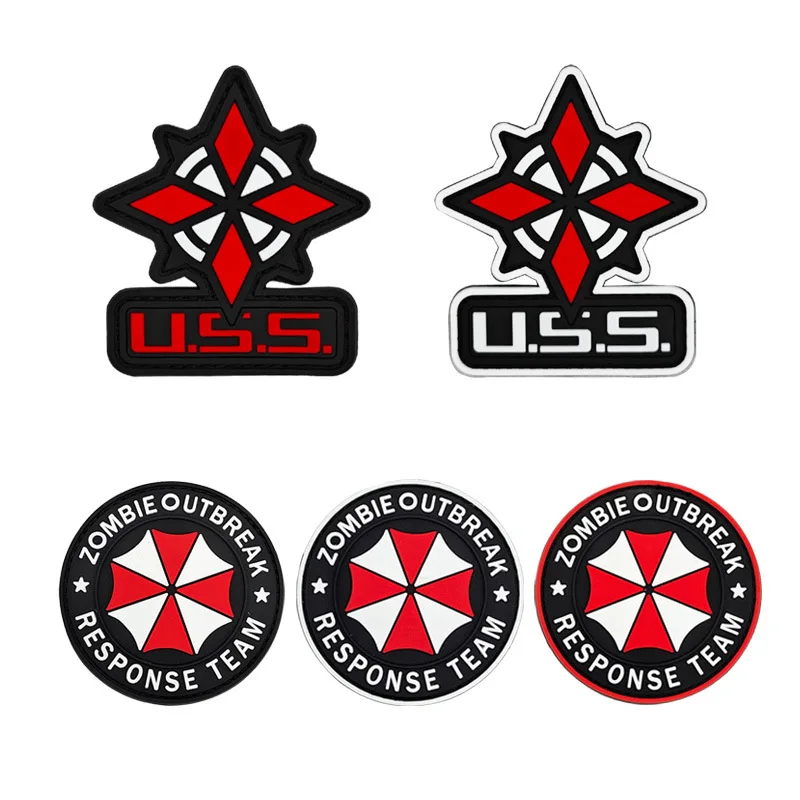 Parches de paraguas Resident Evil de PVC Gancho y bucle en ropa Decoración de insignia de moral táctica de EE. UU. para ropa y mochila. Nota: