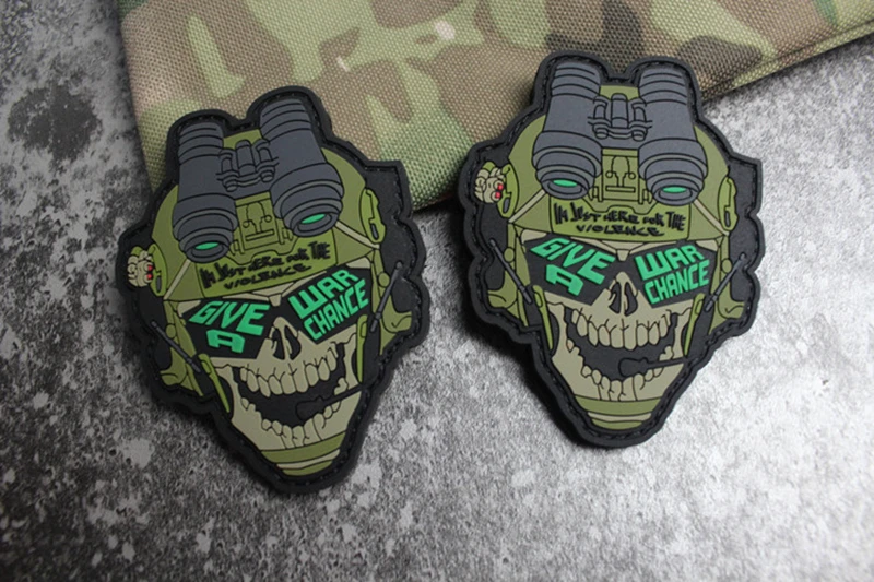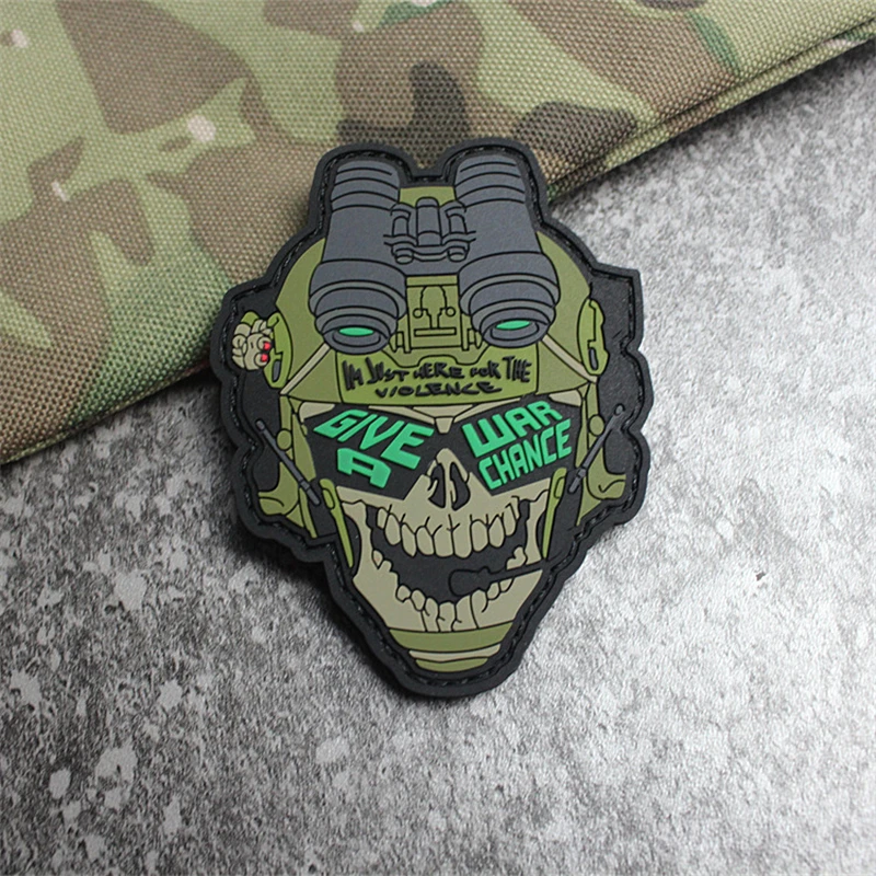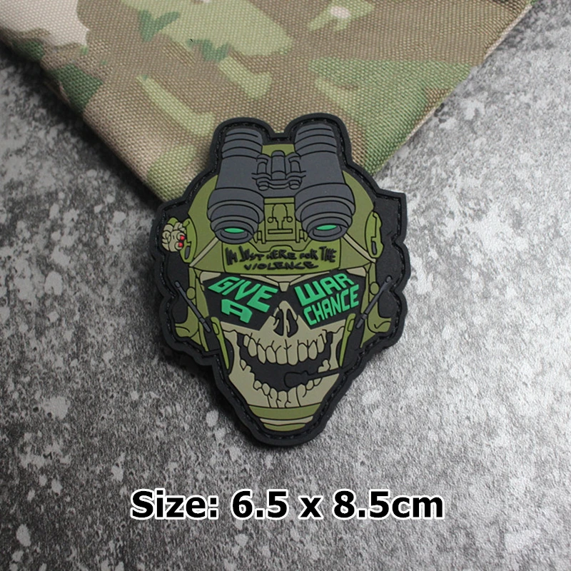 Parches de PVC de soldados de esqueleto táctico, regala la guerra, una posibilidad, solo estoy aquí para la violencia, brazalete para decoración de ropa de bolso