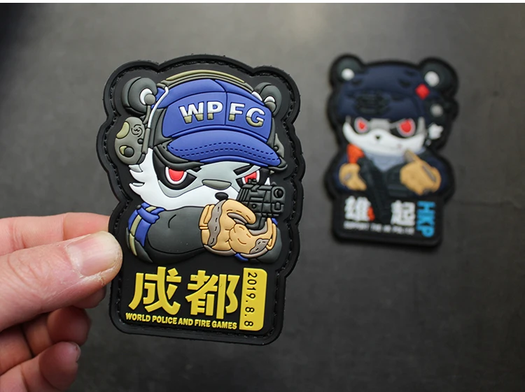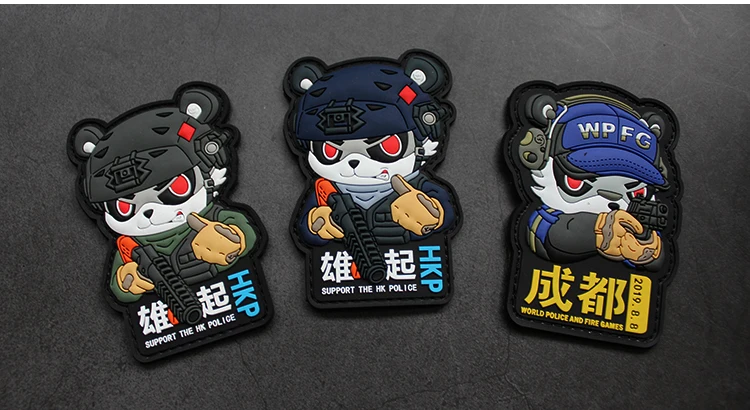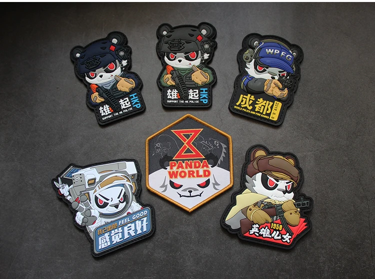 Parches de PVC versión Q Panda World HKP, insignias heróicas conmemorativas aeroespaciales de China, tácticas para bolsa de ropa, casco, chaleco, decoración