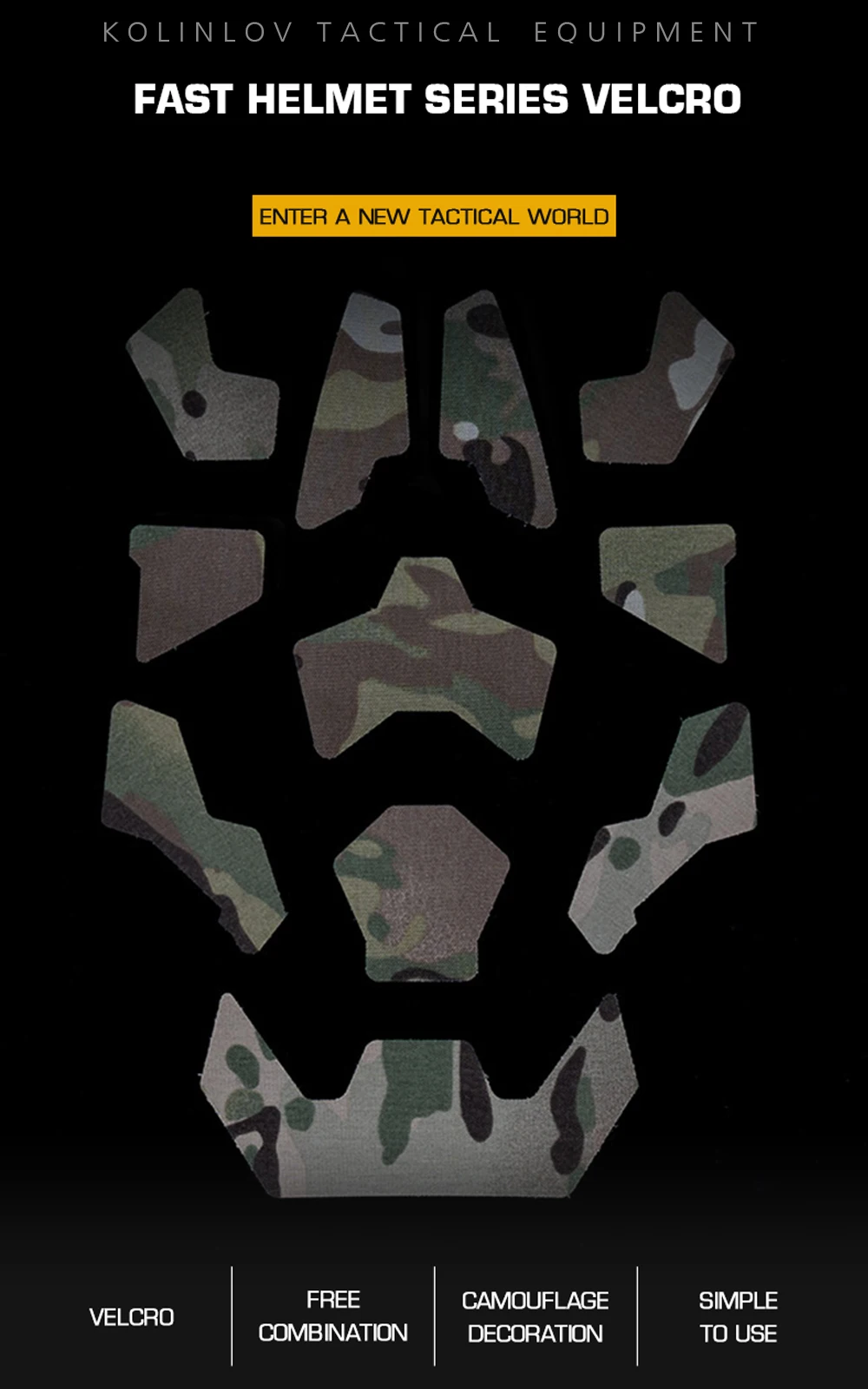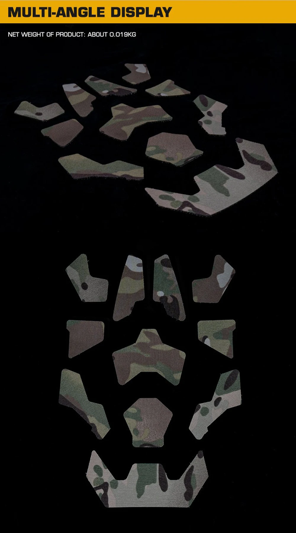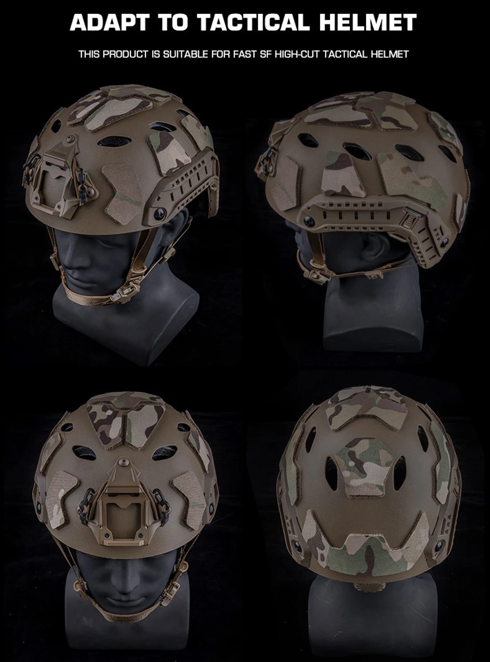 Nombre del producto: pegatina mágica para casco FAST Número de artículo.:AC-61 Tamaño del producto: 26*18*1cm Peso neto del producto: 0,019 kg Peso bruto del producto: 0,034 KG Color del producto: MC/MCBK/MCT/MCOD Material principal: Cordura Escena aplicable: caza, deportes al aire libre y otros juegos tácticos de Airsoft, etc.
