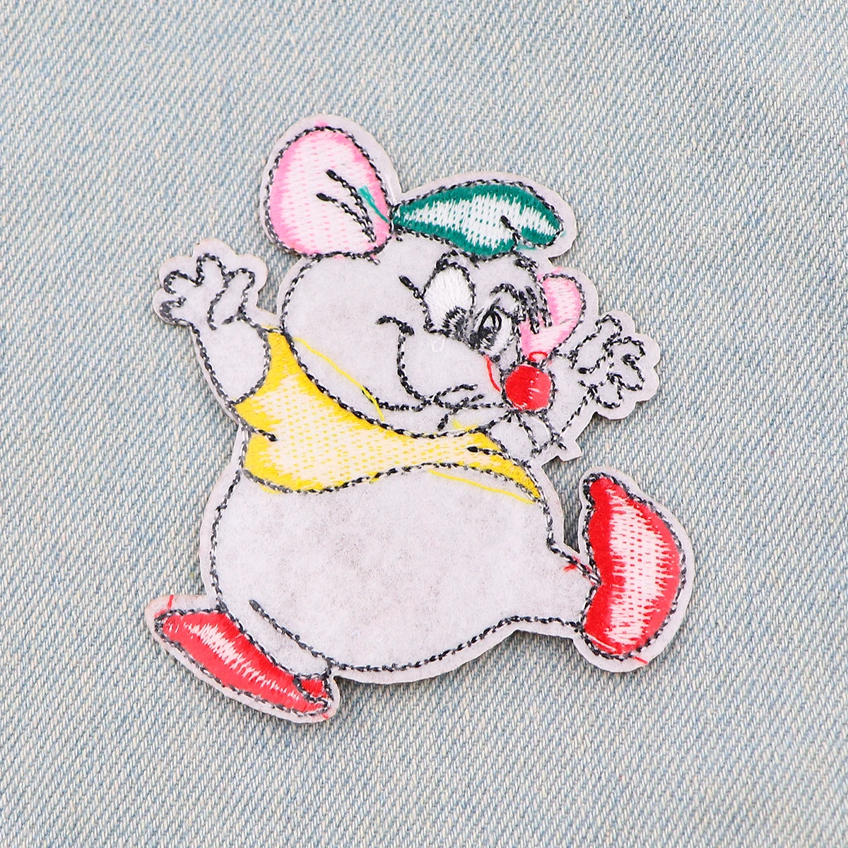 Parches de ratón de dibujos animados para ropa, parches de animales bonitos, apliques para planchar en insignias, pegatinas para ropa, costura DIY, rayas bordadas