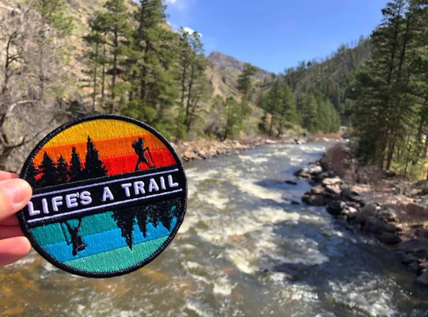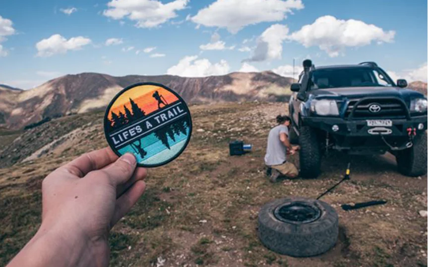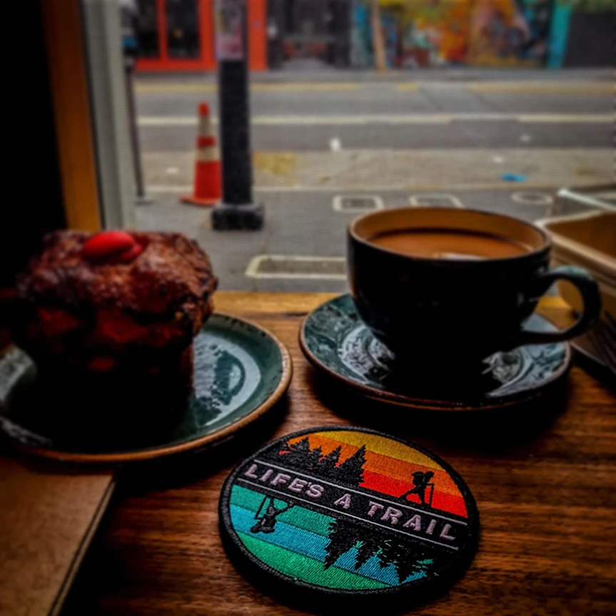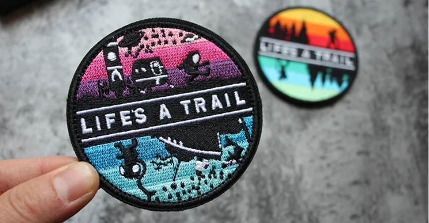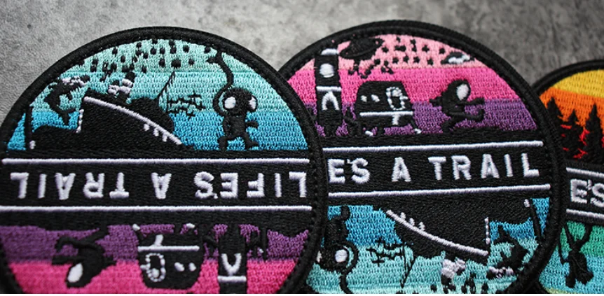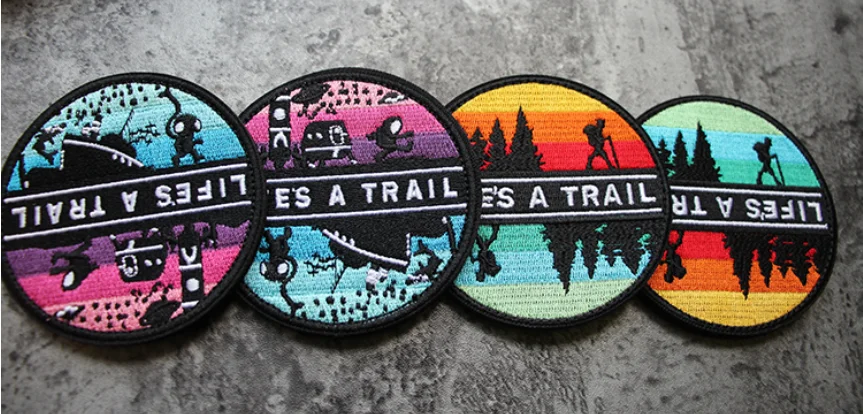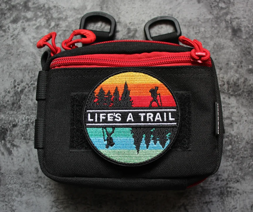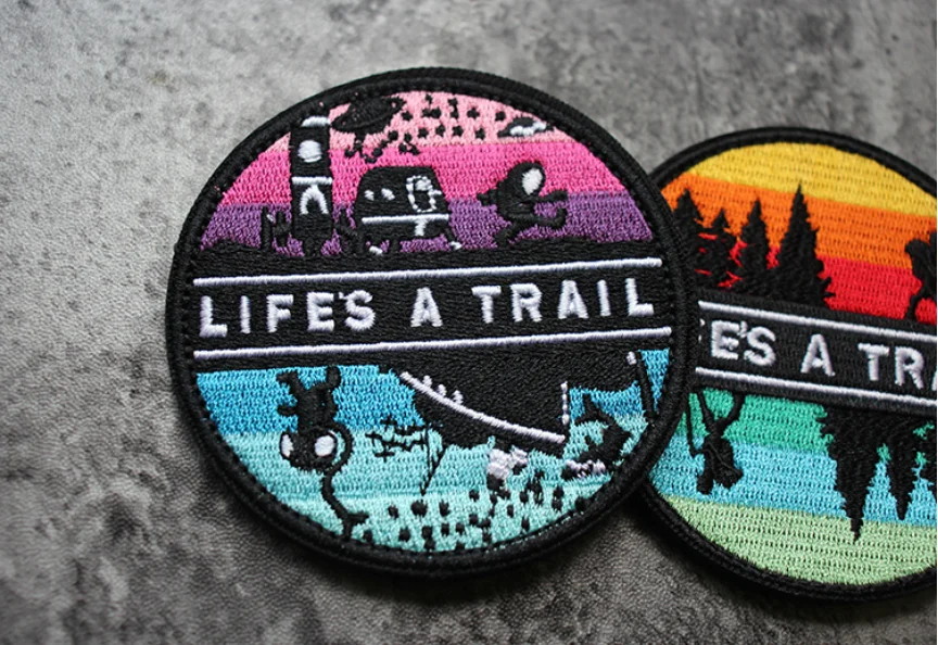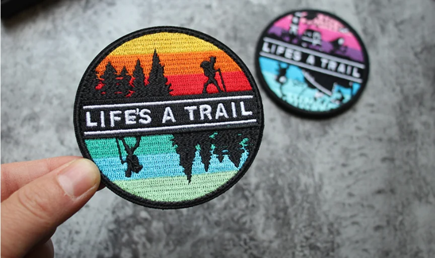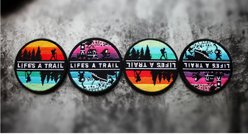 Parches redondos bordados LIFE'S A TRAIL, paisaje al aire libre, escalada, Mar estrellado, imagen invertida, tácticas, brazalete, insignias, bricolaje, decorar