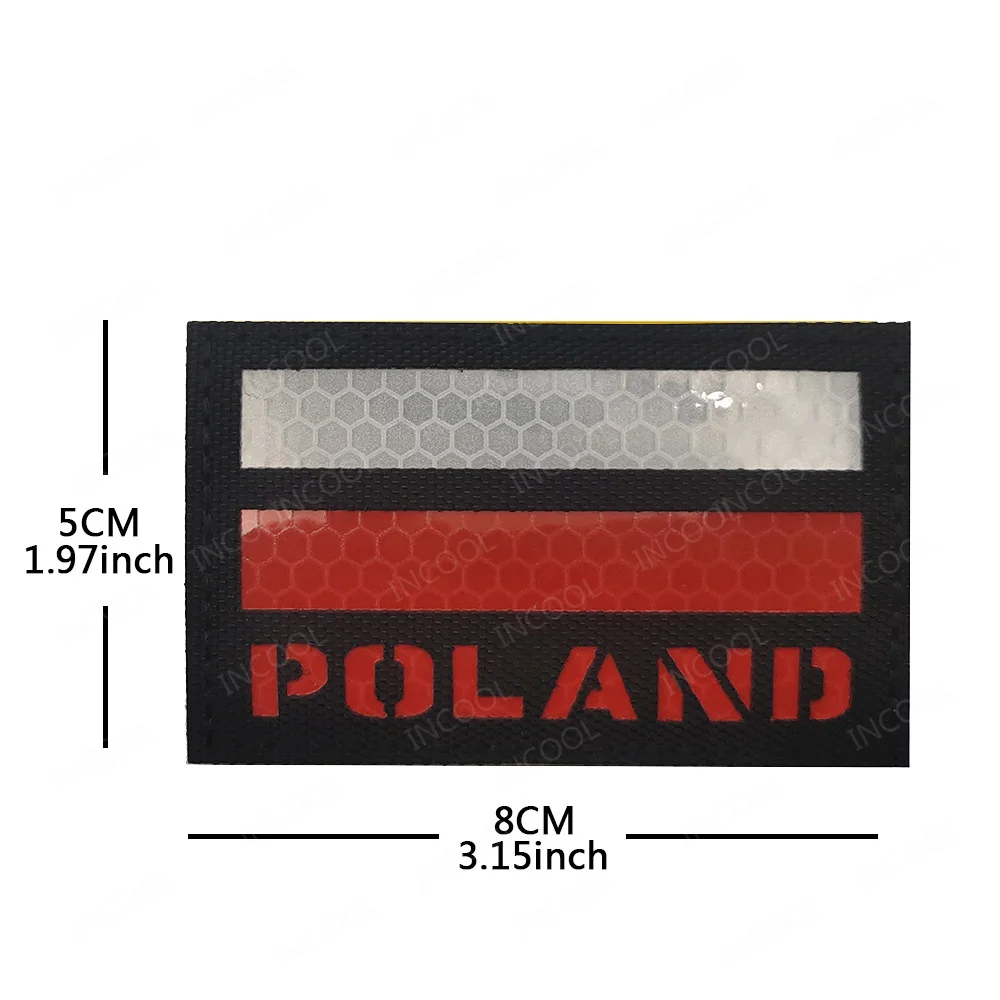 [Especificación]:Parches reflectantes IR con banderas de Polonia, banderas polidas, parche bordado de goma de PVC, apliques finos, brazalete, insignias decorativas tácticas