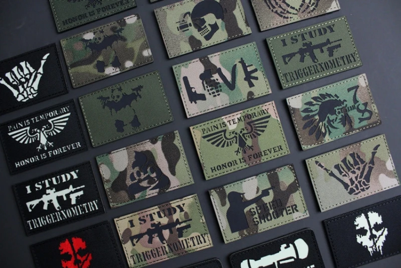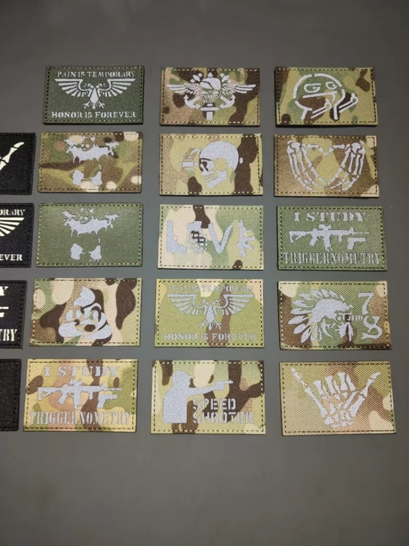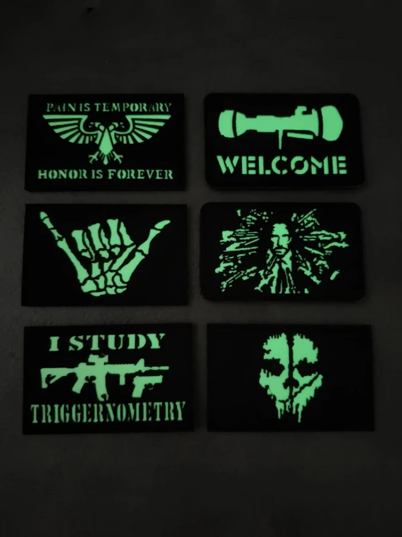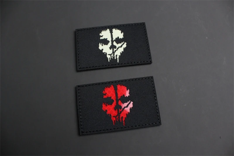 Parches reflectantes de gancho y bucle de calavera de visión nocturna, máscara de fantasma, insignia militar de moralidad, pegatina decorativa para mochila, brazalete táctico