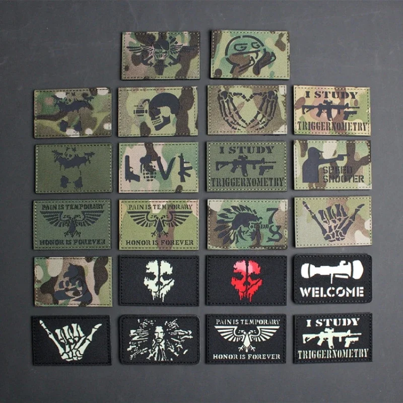 Parches reflectantes de gancho y bucle de calavera de visión nocturna, máscara de fantasma, insignia militar de moralidad, pegatina decorativa para mochila, brazalete táctico