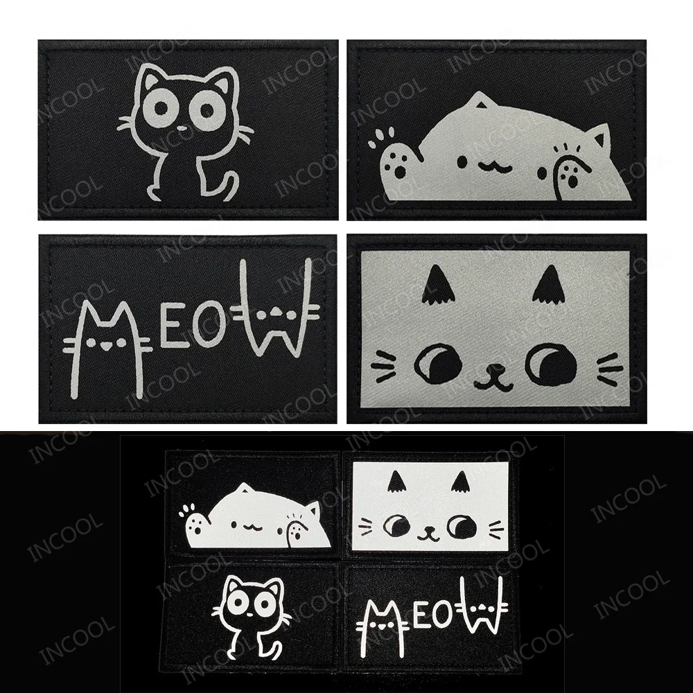 [Especificación]:Parches reflectantes de gato de dibujos animados encantador lindo gatito expresión PVC goma divertida Meow insignia para mochila ropa gorra bolsa apliques