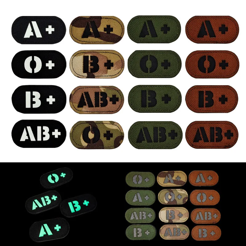Parches reflectantes infrarrojos para el brazo, parche táctico militar con insignias de 5x2,5 cm para el tipo de sangre A B AB O positivo blanco que brilla en la oscuridad