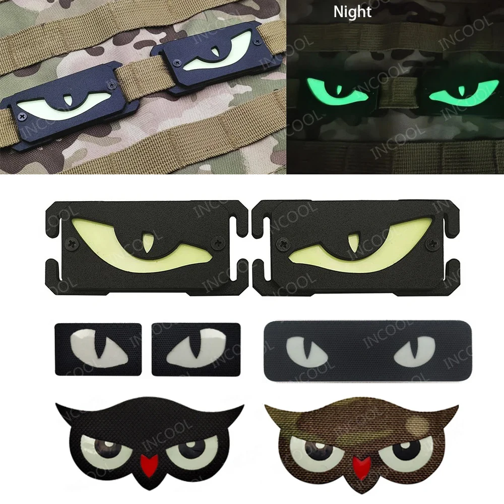 [Especificación]:Parches reflectantes infrarrojos con ojos de gato, emblema aplicado de goma que brilla en la oscuridad para sombreros, casco, mochila uniforme
