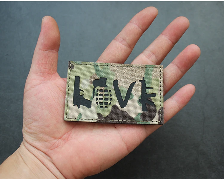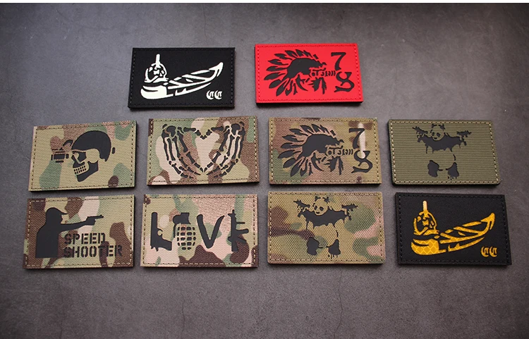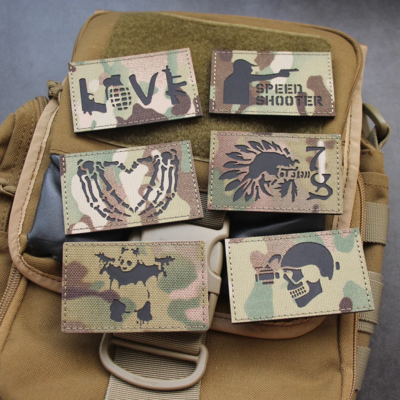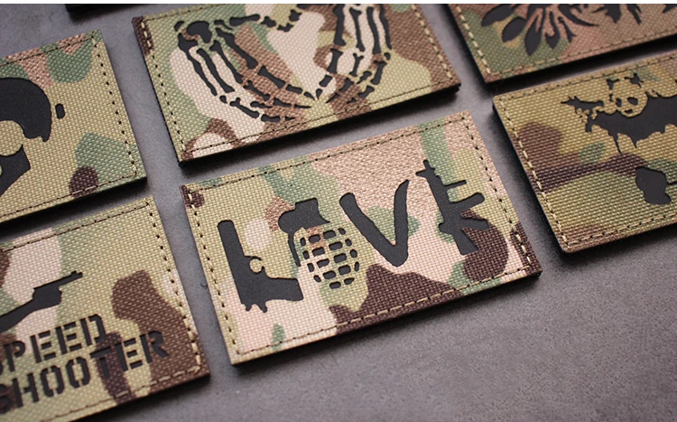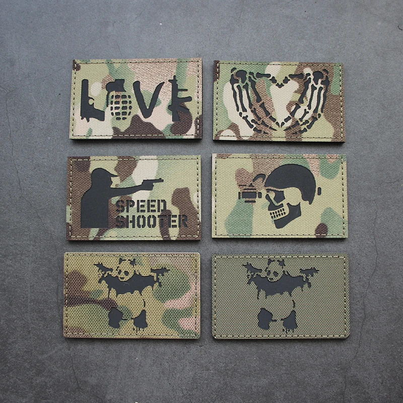 Parches reflectantes de nailon de camuflaje, SHOOTER de velocidad ONE7, doble pistola, Panda, calavera verde, dedos, corazones de amor, insignia táctica militar